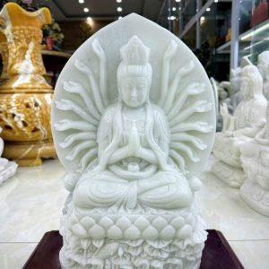 Tượng phật chuẩn đề đá cẩm thạch trắng cao 40cm ngang 30cm dày 15cm nặng 15kg