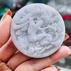 Mặt ngọc type A ánh tử lan chạm 2 mặt rồng phượng_MS001