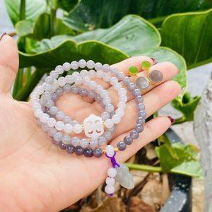 Set ngọc Hòa Điền xám 108 hạt mix charm