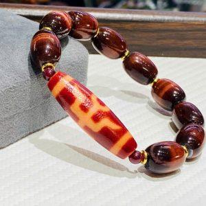 Dzi Quý Nhân thân huyết châu mix vòng lu mắt hổ nâu đỏ