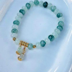 Vòng ngọc phỉ thuý hoa bay mix charm hồ lô