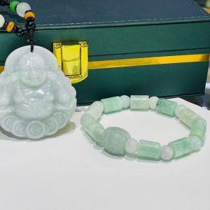 Set vòng tay + mặt di lặc hoa bay lý táo A