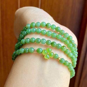 Chuỗi ngọc bích canada 5li mix cham cỏ bốn lá bạc xi vàng