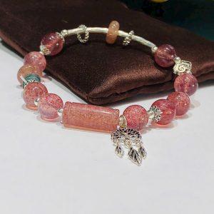 Vòng mix cham bạc thạch anh dâu hồng
