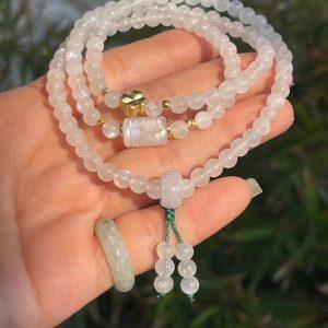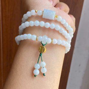 Chuỗi vòng tay bạch ngọc mix cham lu thống Ngọc type A
