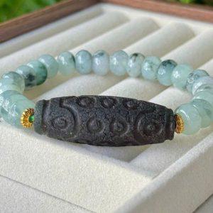 Vòng ngọc phỉ thuý hoa bay mix charm hồ lô