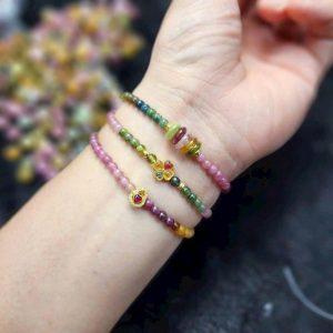 Chuỗi Tourmaline Mix Charm Bạc 925 Lu thống+Cỏ 4 lá+ngũ điếu_MS001