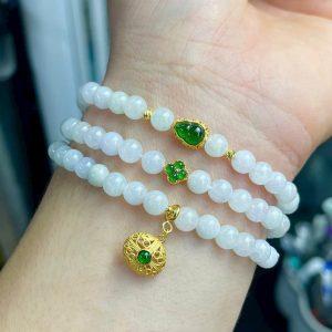 Chuỗi Jade Bạch ngọc Type A 5.8-6mm Mix Charm Bạc s925 Phỉ thúy Type A