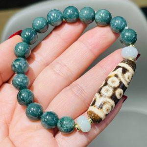 Vòng tay cẩm thạch mix Dzi Thần Tài _ DZI116