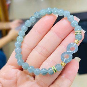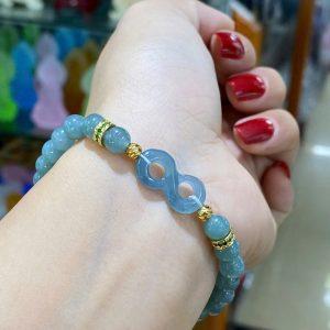 Vòng tay chuỗi hạt lam ngọc tự nhiên mix charm hoa cẩm thạch