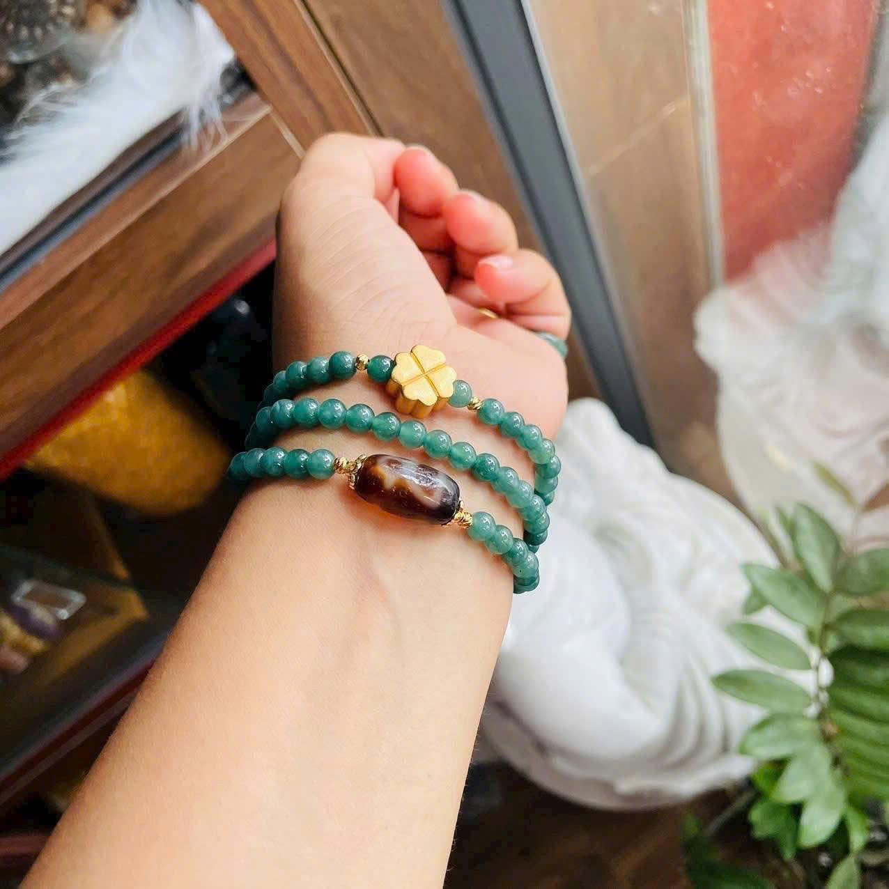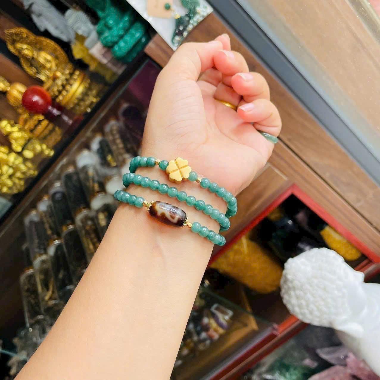 Vòng tay Dzi Thần Tài mix lam ngọc hợp với ai