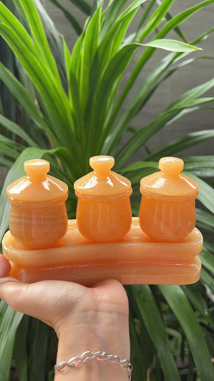 Bộ sản phẩm gồm 3 ly ngọc đồng bộ, đi kèm đế liền nguyên khối, giúp tổng thể chắc chắn, gọn gàng và rất thẩm mỹ. Thiết kế 3 ly đặt cạnh nhau tạo cảm giác cân đối, hài hòa, tượng trưng cho sự đủ đầy, gắn kết và hòa hợp trong gia đình.