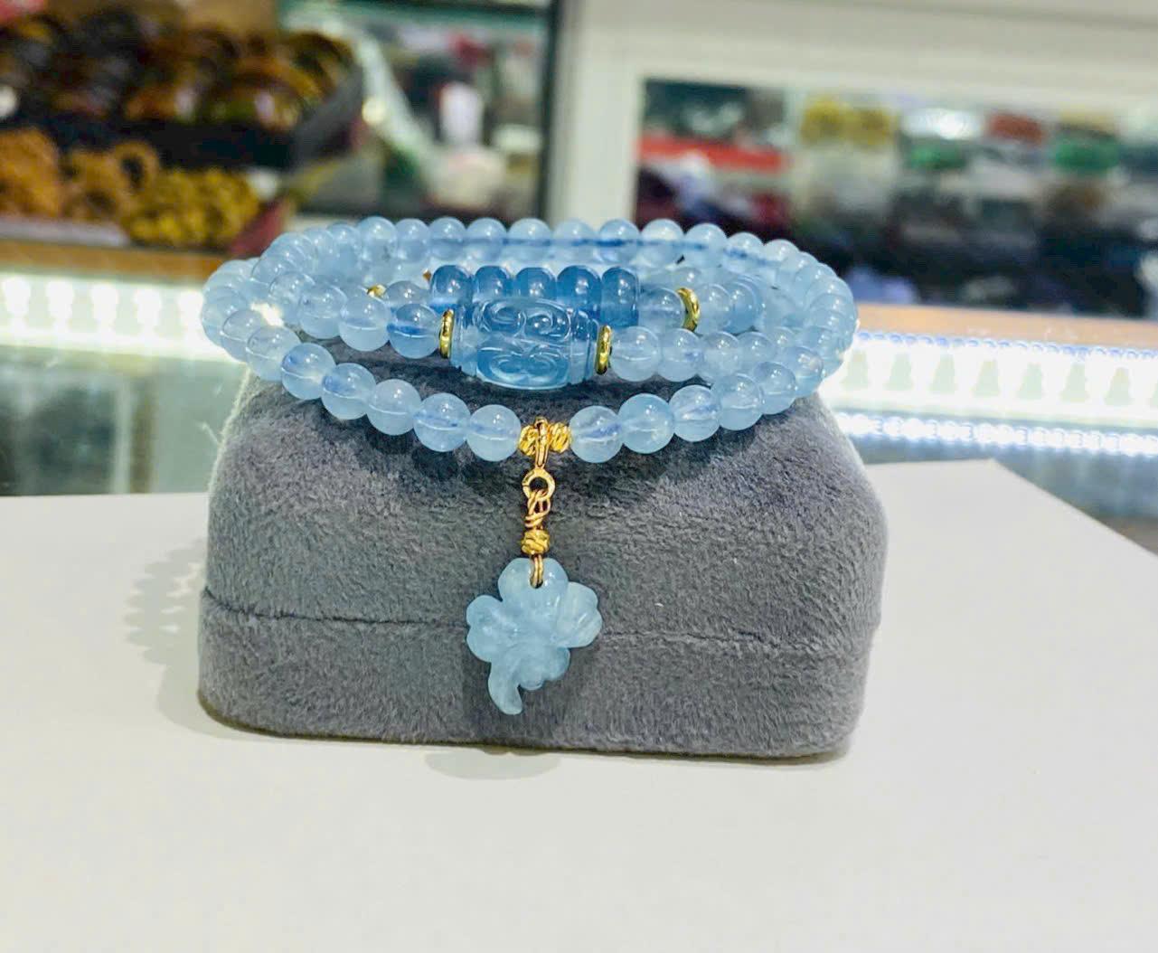 Với thiết kế hạt nhỏ 5.2li thanh mảnh, kết hợp charm chạm khắc tinh xảo, chuỗi Aquamarine mix charm phù hợp với nhiều phong cách khác nhau, từ trang sức đeo thường ngày đến phụ kiện phong thủy mang tính cá nhân cao.