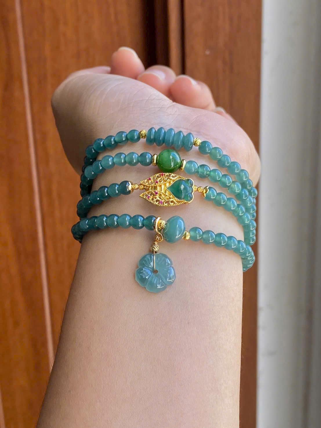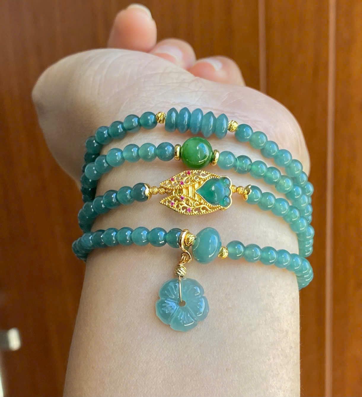 Chuỗi Lam Ngọc Cao Băng 4.5li Mix Charm Ngọc Thiền + Hoa Mai – Vẻ Đẹp Của Bình An Và Trí Tuệ