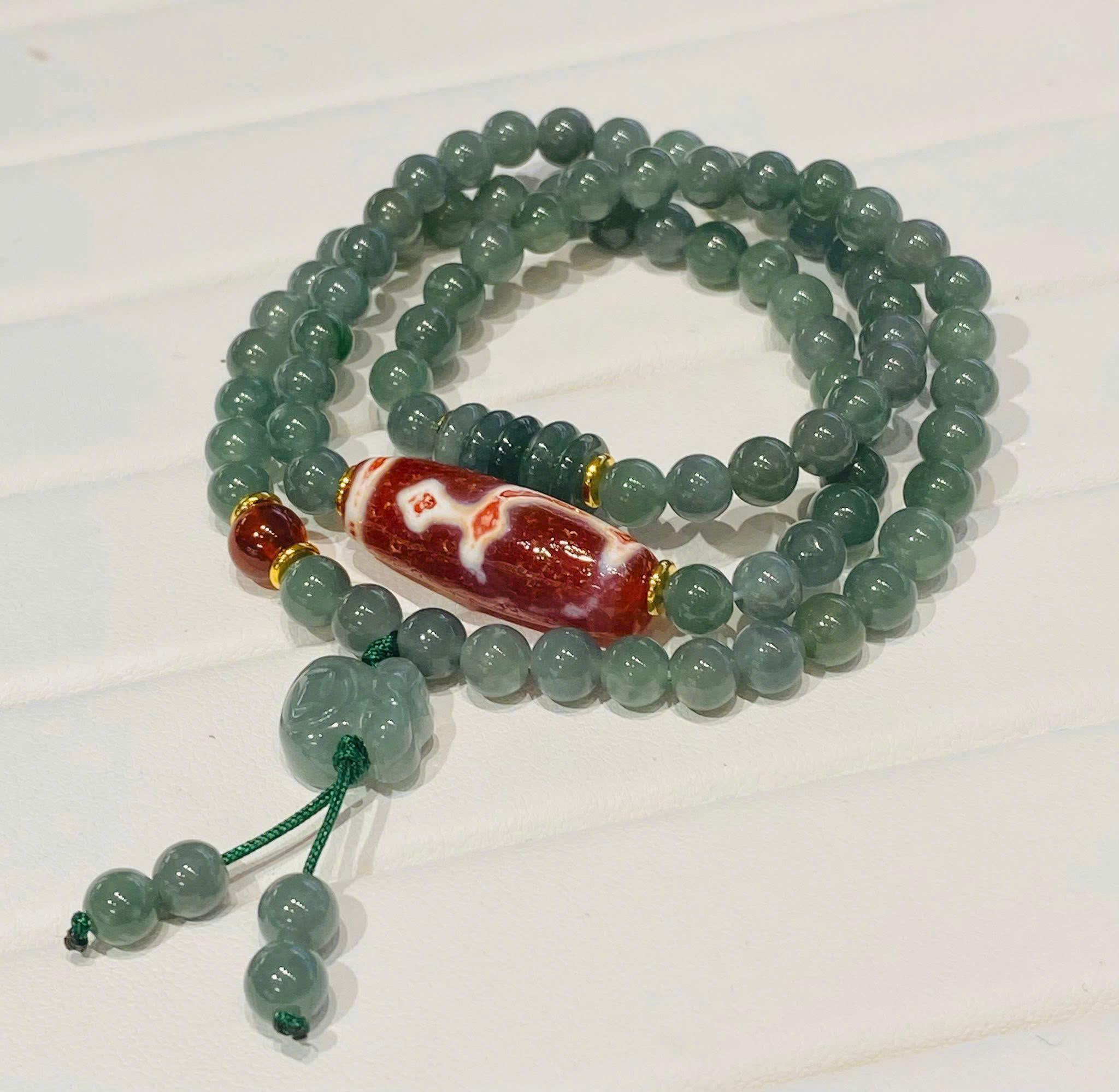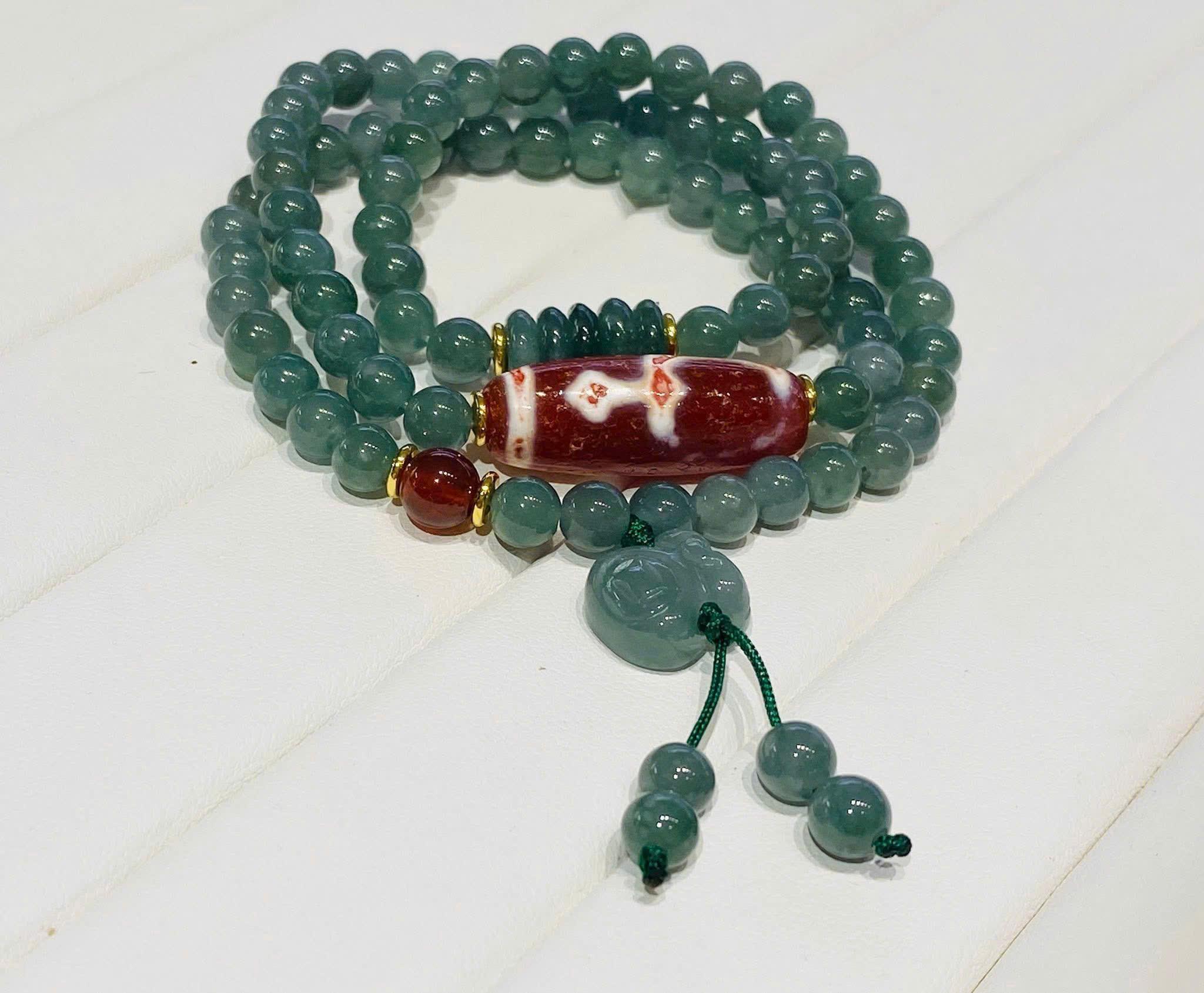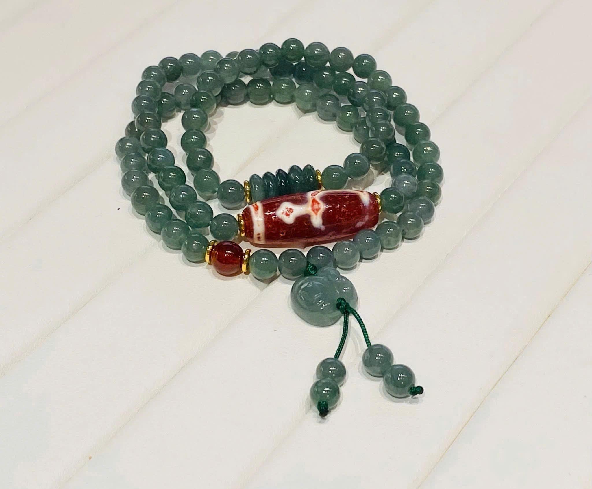 Chuỗi lam ngọc mix Dzi Bảo Bình thân huyết châu mang đến nhiều giá trị phong thủy tích cực: