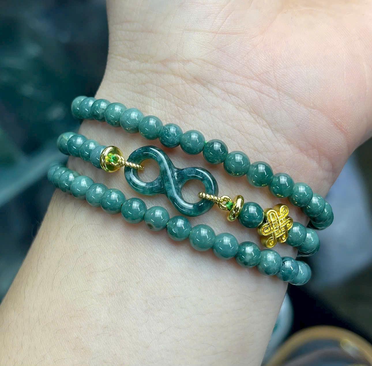 Sự hòa quyện giữa sắc xanh thanh mát và ánh vàng nổi bật tạo nên tổng thể hài hòa, tinh tế nhưng vẫn đủ thu hút. Charm không quá cầu kỳ nhưng lại mang giá trị biểu tượng sâu sắc, giúp chiếc vòng không chỉ là món trang sức làm đẹp mà còn là vật phẩm mang theo lời chúc tốt lành mỗi ngày.