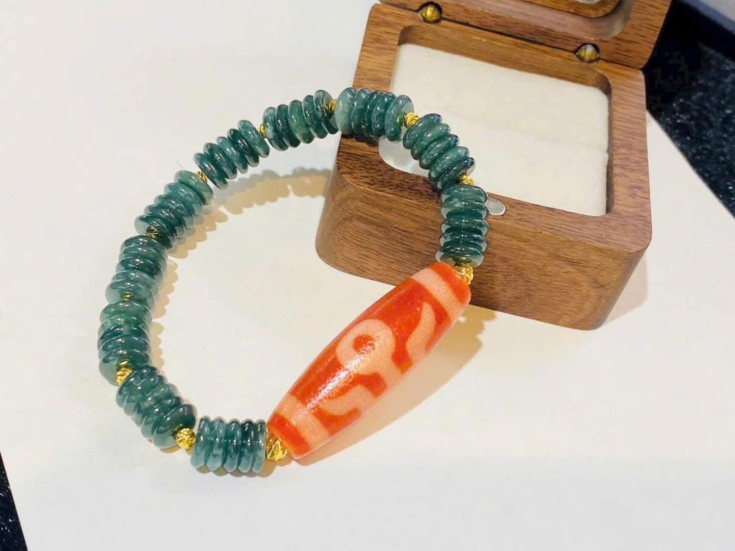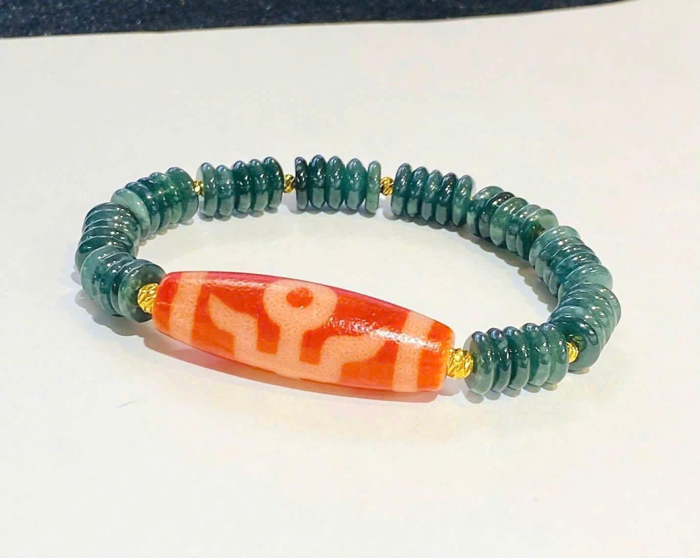 Chuỗi vòng Dzi Quý Nhân Huyết Hải Châu mix chuỗi lam ngọc bánh xe là một thiết kế giàu năng lượng, mang trong mình sự hòa quyện giữa vẻ đẹp huyền bí của hạt Dzi Tây Tạng và sự dịu mát, cân bằng của lam ngọc tự nhiên. Đây là sản phẩm dành cho những ai mong muốn thu hút quý nhân, củng cố vận may, tăng cường sự bảo hộ trong cuộc sống và tạo nên điểm nhấn phong thủy sang trọng trên cổ tay. Tổng thể chiếc vòng toát lên sự tinh tế, cổ kính nhưng vẫn rất hiện đại, phù hợp với cả nam và nữ, đặc biệt là những người làm kinh doanh hoặc thường xuyên làm việc với đối tác.