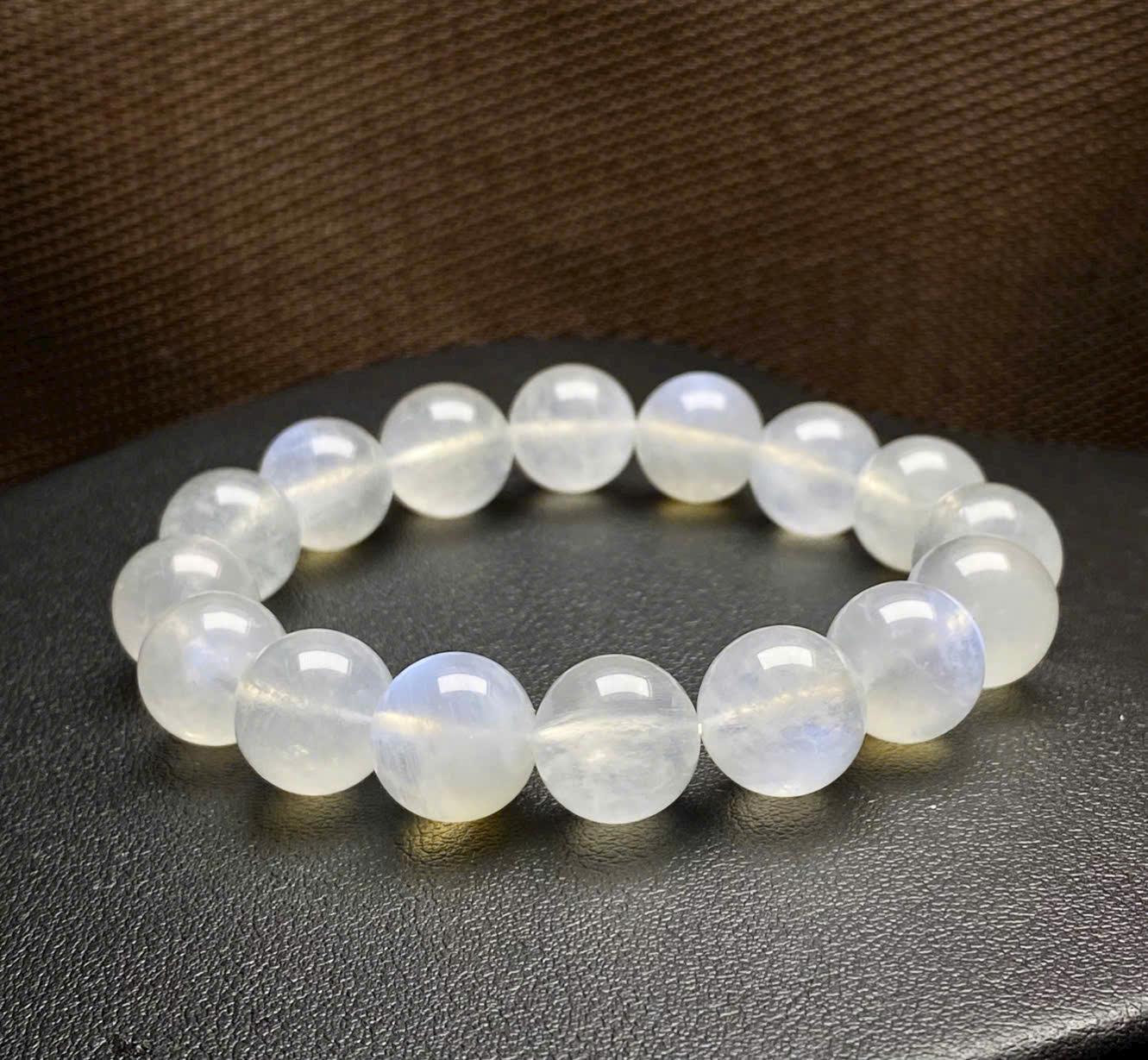 Vòng tay đá Moonstone hạt tròn màu trắng là một trong những mẫu trang sức phong thủy mang vẻ đẹp nhẹ nhàng, thanh khiết và tinh tế. Moonstone, hay còn gọi là đá Ánh Trăng, nổi tiếng với hiện tượng quang học mềm mại như ánh trăng phản chiếu, đem lại cho sản phẩm vẻ cuốn hút khó nhầm lẫn. Với thiết kế hạt tròn đồng đều, màu trắng trong trẻo và hiệu ứng ánh xanh khi nghiêng dưới ánh sáng, chiếc vòng là lựa chọn lý tưởng cho những ai yêu thích sự thanh nhã, dịu dàng nhưng vẫn muốn sở hữu một món trang sức mang năng lượng mạnh mẽ.