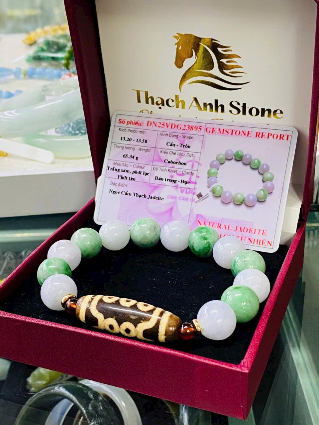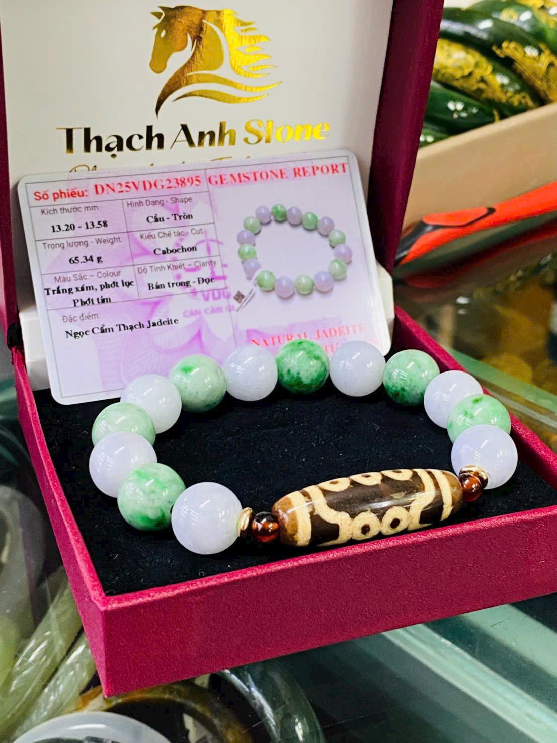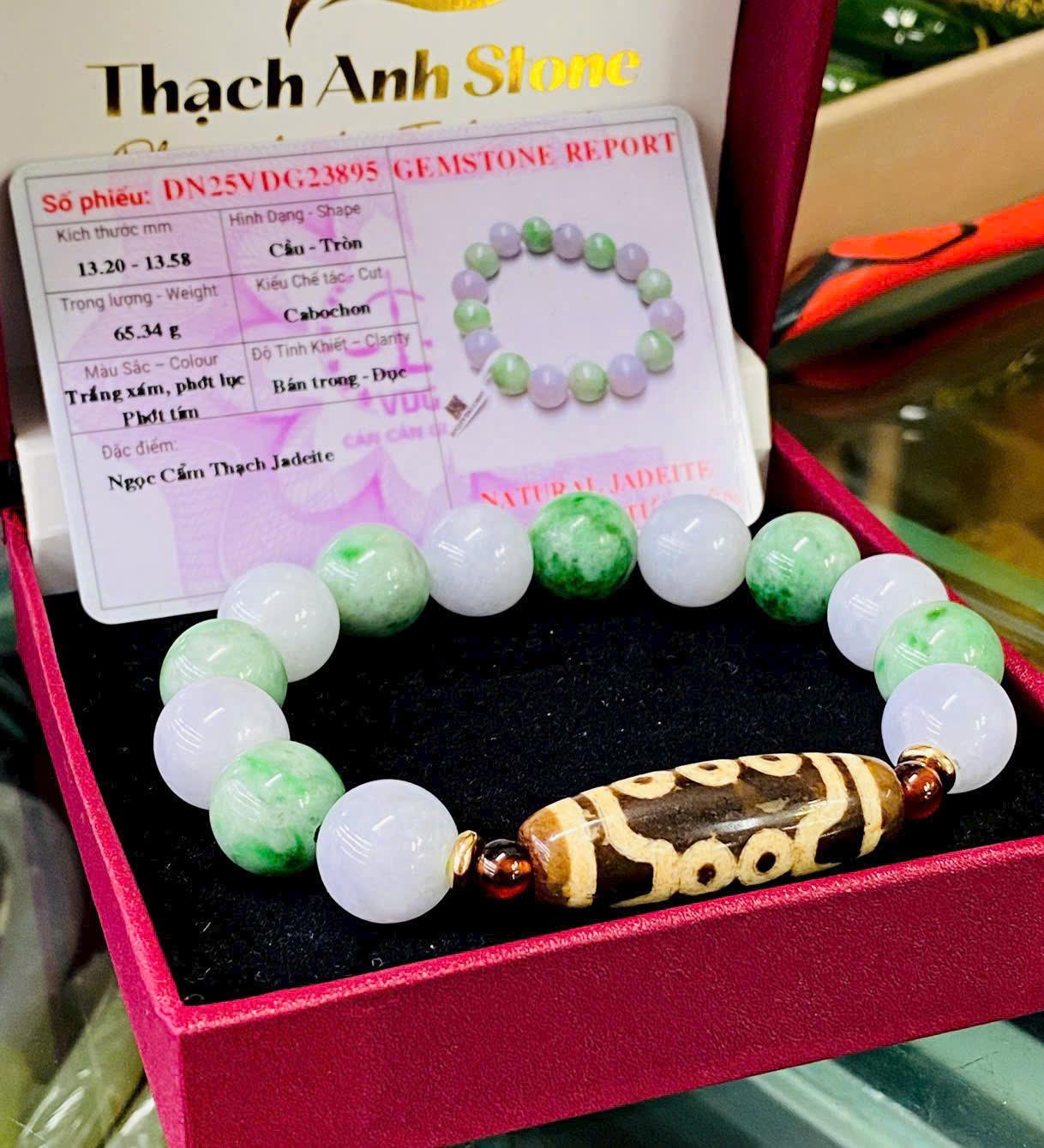 Màu xanh lục và trắng trong của ngọc tượng trưng cho sự tươi mới, thịnh vượng và trường tồn. Khi kết hợp cùng Dzi 10 mắt, chiếc vòng tạo nên sự hòa hợp hoàn hảo giữa trí tuệ – tài lộc – bình an, giúp chủ nhân luôn giữ được tinh thần sáng suốt và năng lượng tích cực.