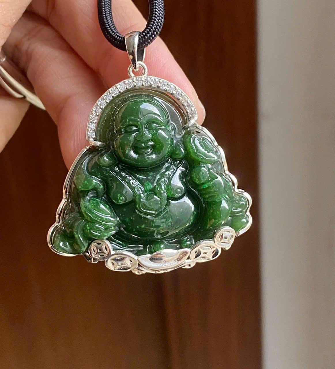 Mặt Dây Chuyền Di Lặc Ngọc Bích Canada Tự Nhiên Bọc Bạc – Trang Sức Phong Thủy Sang Trọng