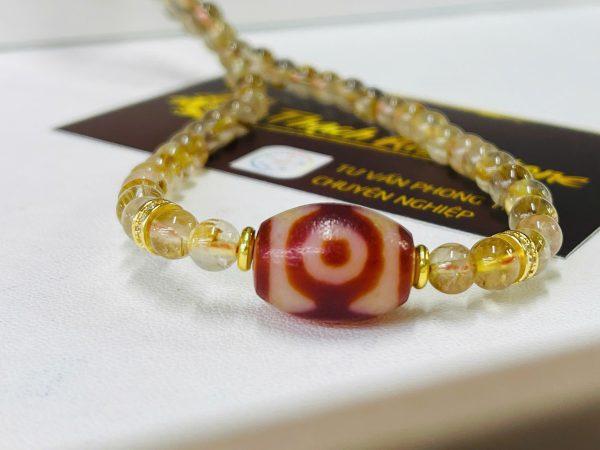 Dzi 3 mắt huyết hải châu phối thạch anh tóc vàng – Biểu tượng của tài lộc, may mắn và bình an