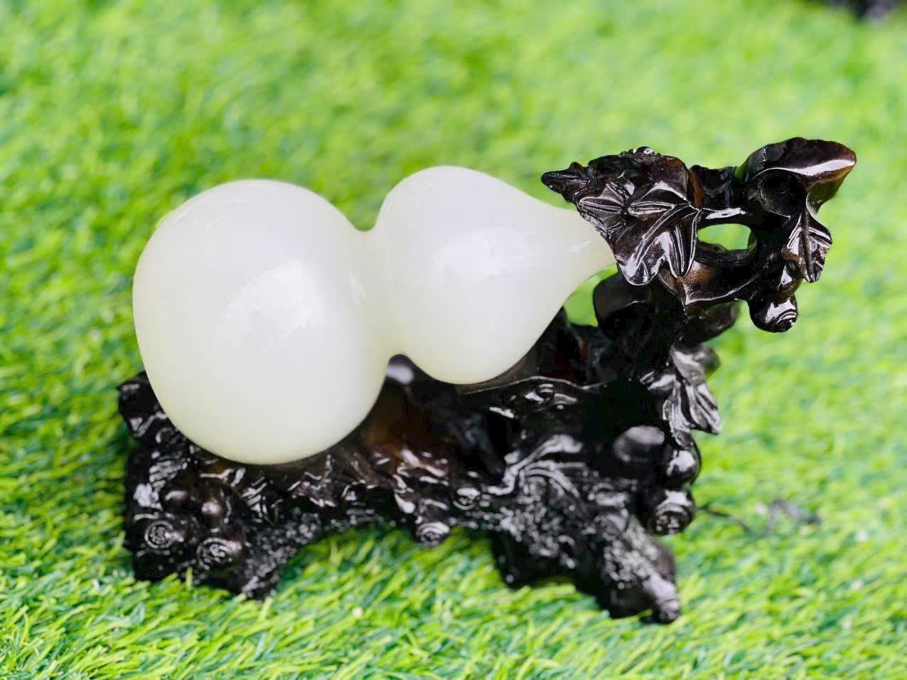 Trong văn hóa Á Đông, hồ lô là biểu tượng của sức khỏe, trường thọ và sự bảo hộ. Người sở hữu hồ lô thường mong cầu gia đạo bình an, hóa giải bệnh tật và tăng cường may mắn. Với chất liệu Onyx trắng, hồ lô còn mang thêm ý nghĩa thanh lọc năng lượng, giúp gia chủ luôn giữ tinh thần sáng suốt và tránh xa điều xấu. Vật phẩm cũng được xem là lá bùa chiêu tài, giữ lộc, rất thích hợp đặt ở cung Tài Lộc hoặc cạnh thần Tài – Thổ Địa.