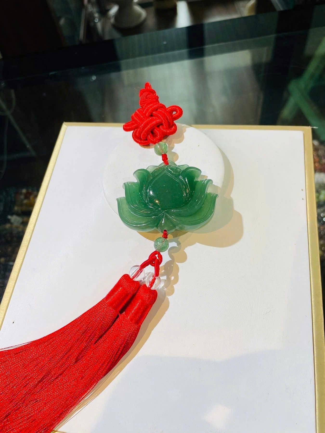 Khi kết hợp cùng thạch anh xanh, hình tượng hoa sen càng gia tăng năng lượng bình an, giúp xua tan tạp khí, mang lại cảm giác thư thái, nhẹ nhàng và dễ chịu. Đây cũng là lý do khánh treo hoa sen được nhiều người lựa chọn như một vật phẩm phong thủy bảo hộ trong quá trình di chuyển.