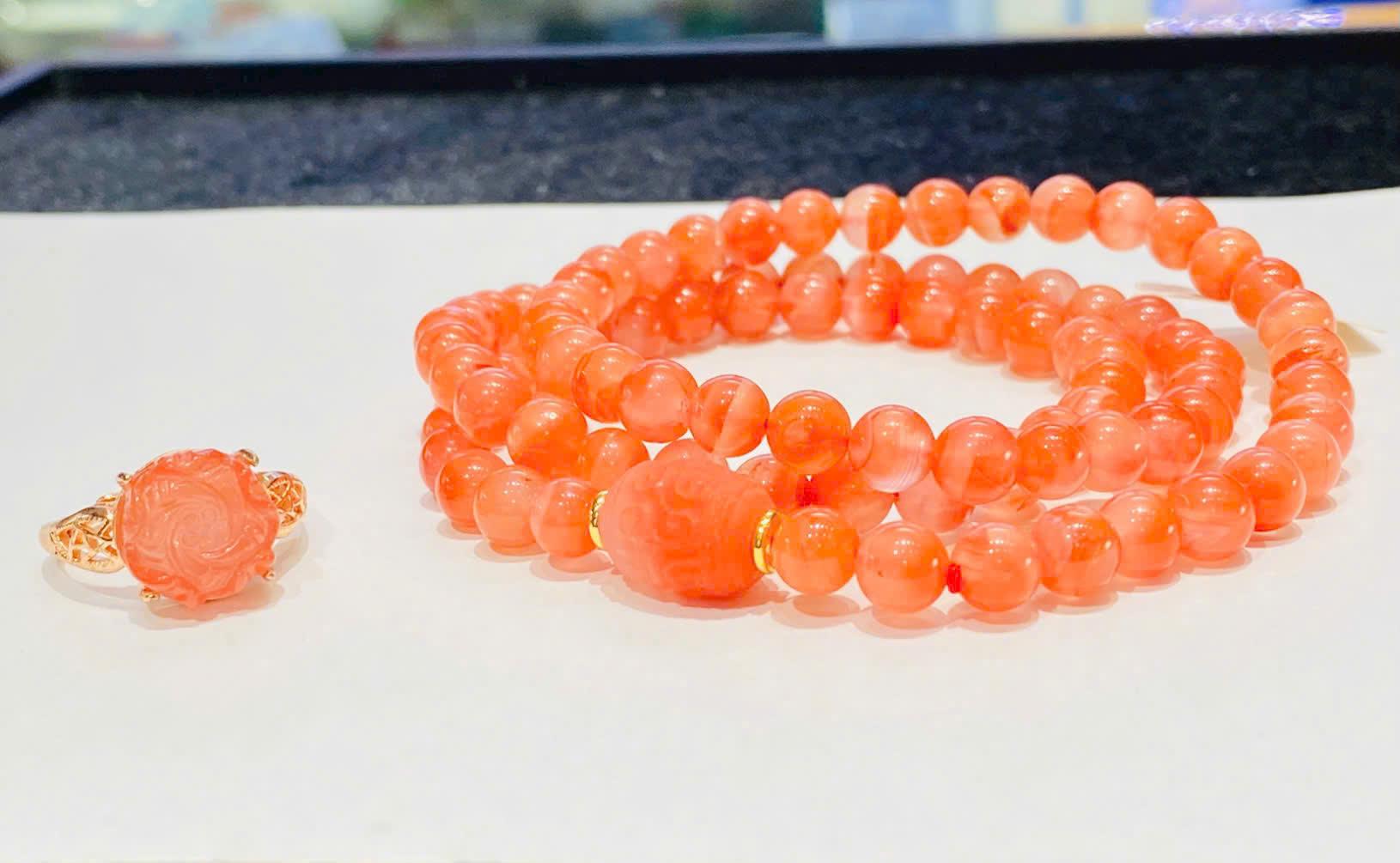 Dưới ánh sáng, từng hạt mã não ánh lên sắc hồng cam tự nhiên, không gắt, không tối, rất dễ phối cùng trang phục hằng ngày. Đây là gam màu được nhiều khách hàng yêu thích bởi sự dịu dàng, tinh tế nhưng vẫn đủ nổi bật.