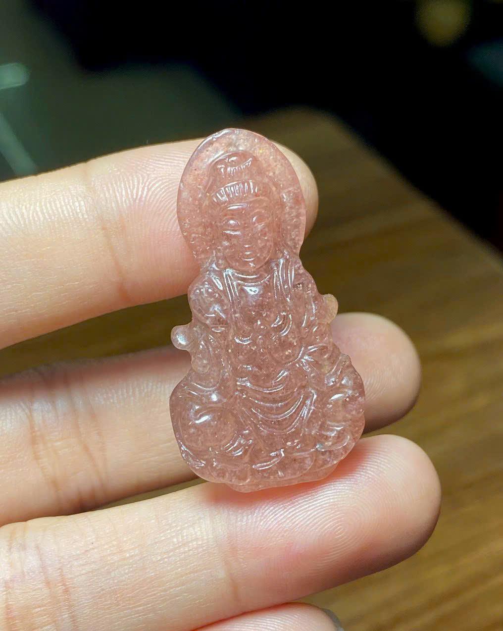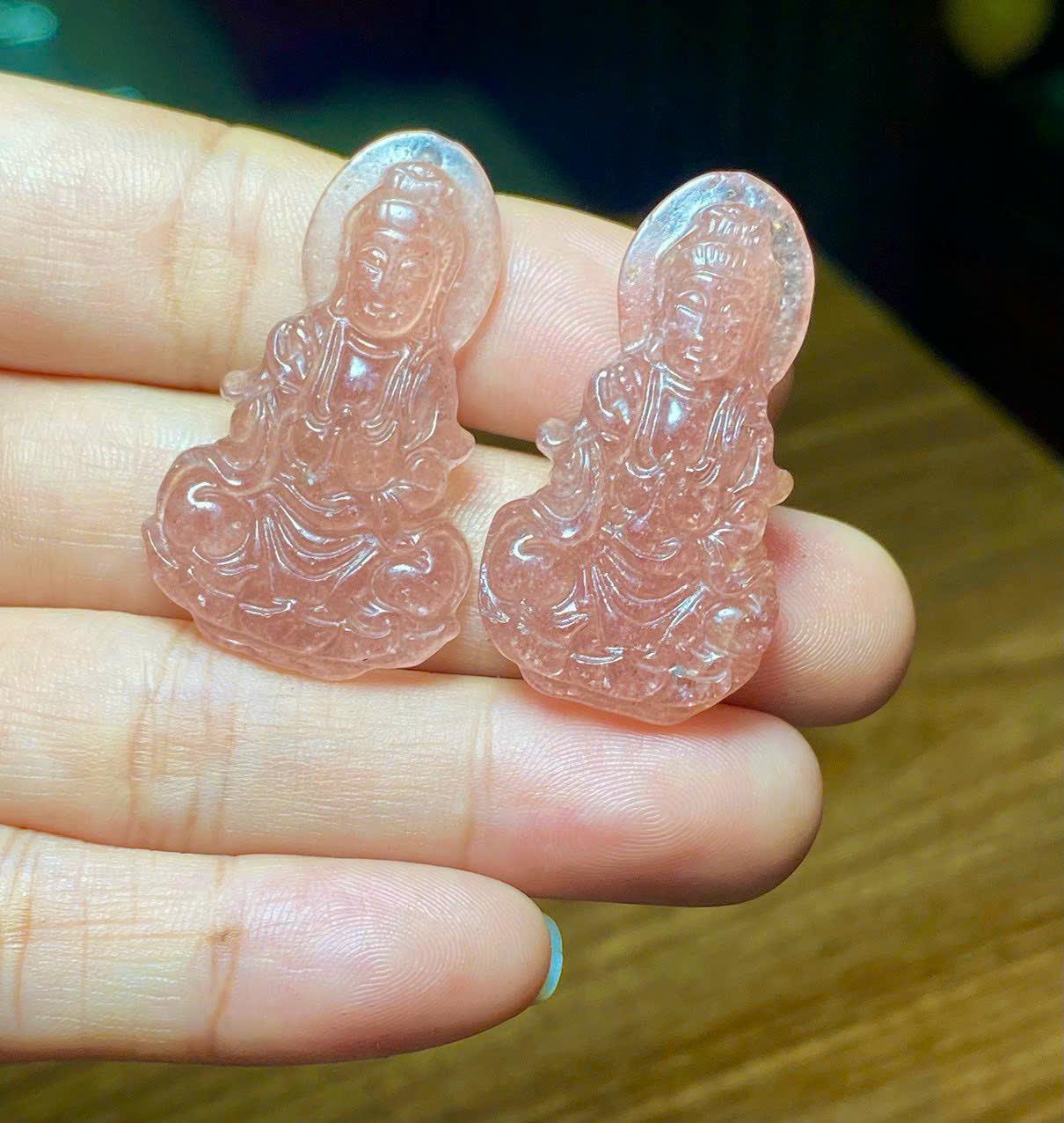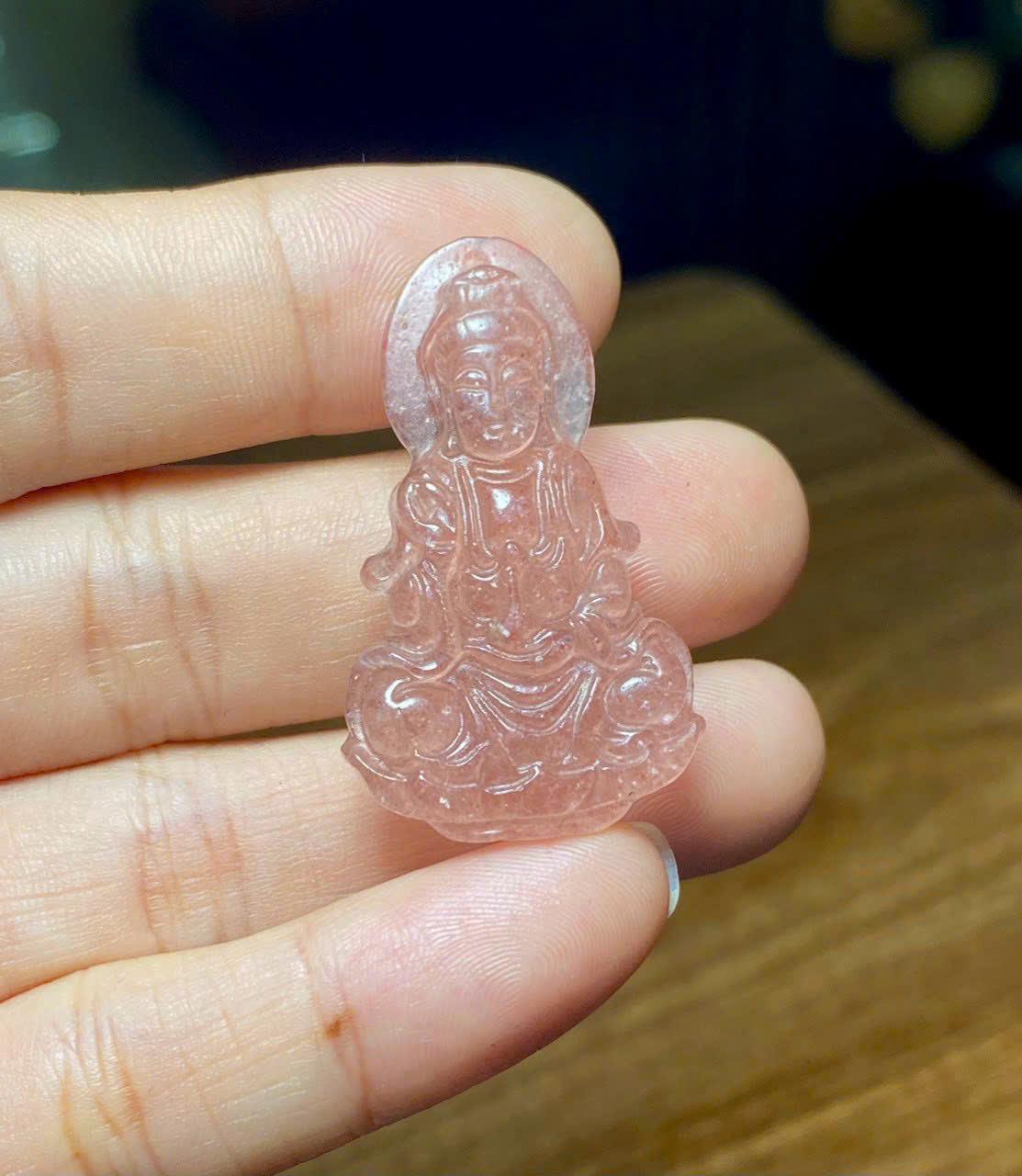 Mặt Phật Quan Âm Thạch Anh Dâu Tây Hồng: Biểu Tượng Của Bình An Và Phước Lành
