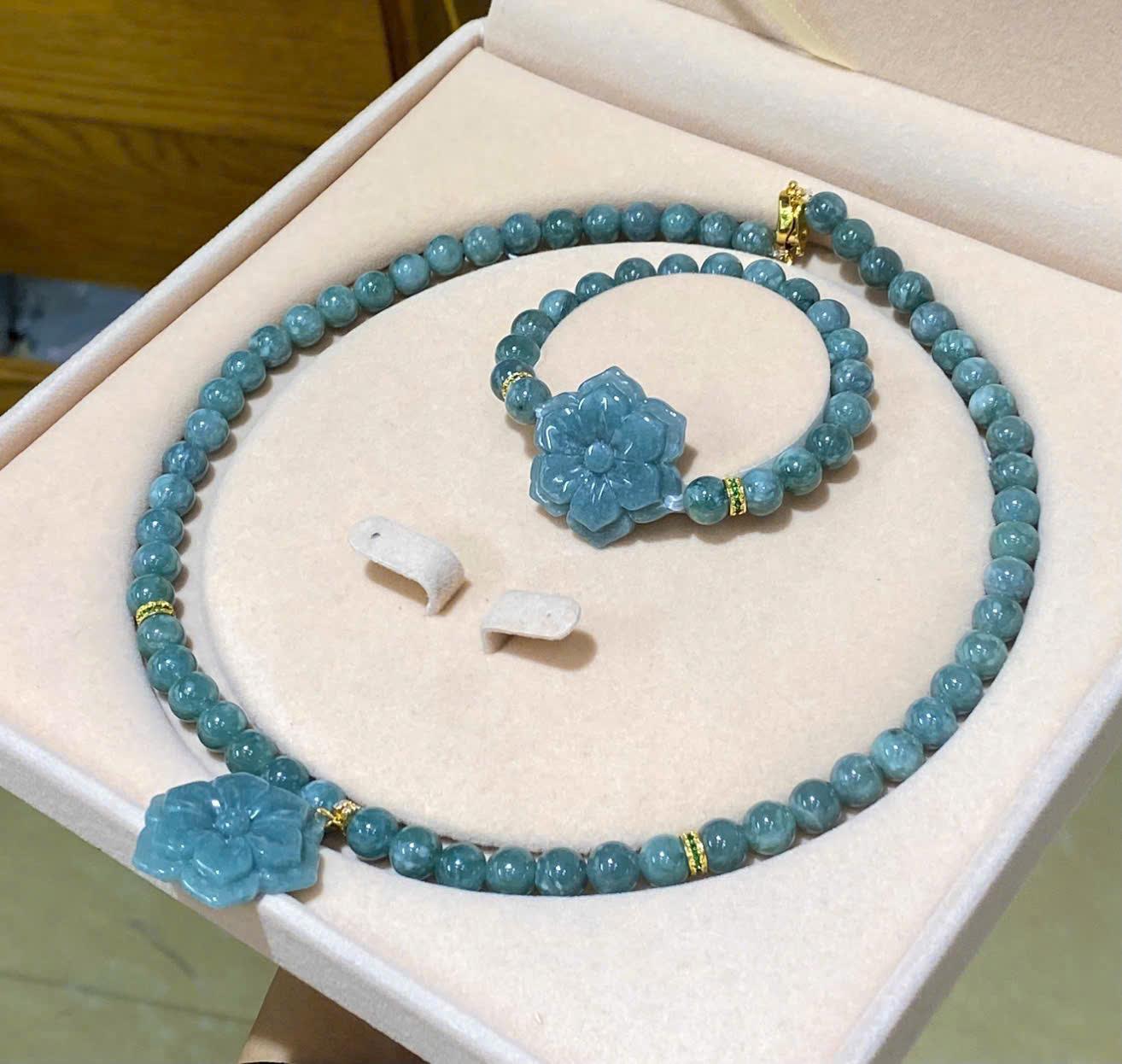 Set lam ngọc hoa mai phú quý size 8li là sự kết hợp hài hòa giữa sắc xanh dịu mát của lam ngọc thiên nhiên cùng hình tượng hoa mai thanh cao, tạo nên tổng thể trang sức vừa tinh tế vừa mang ý nghĩa phong thủy sâu sắc. Thiết kế gồm vòng cổ và vòng tay đồng bộ giúp tôn lên nét duyên dáng, trang nhã của người đeo, đồng thời lan tỏa nguồn năng lượng tích cực, thu hút tài lộc và may mắn.