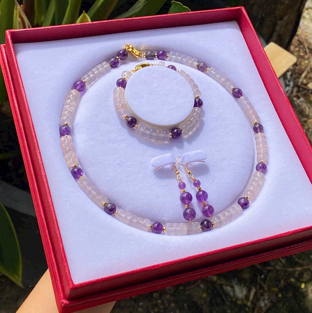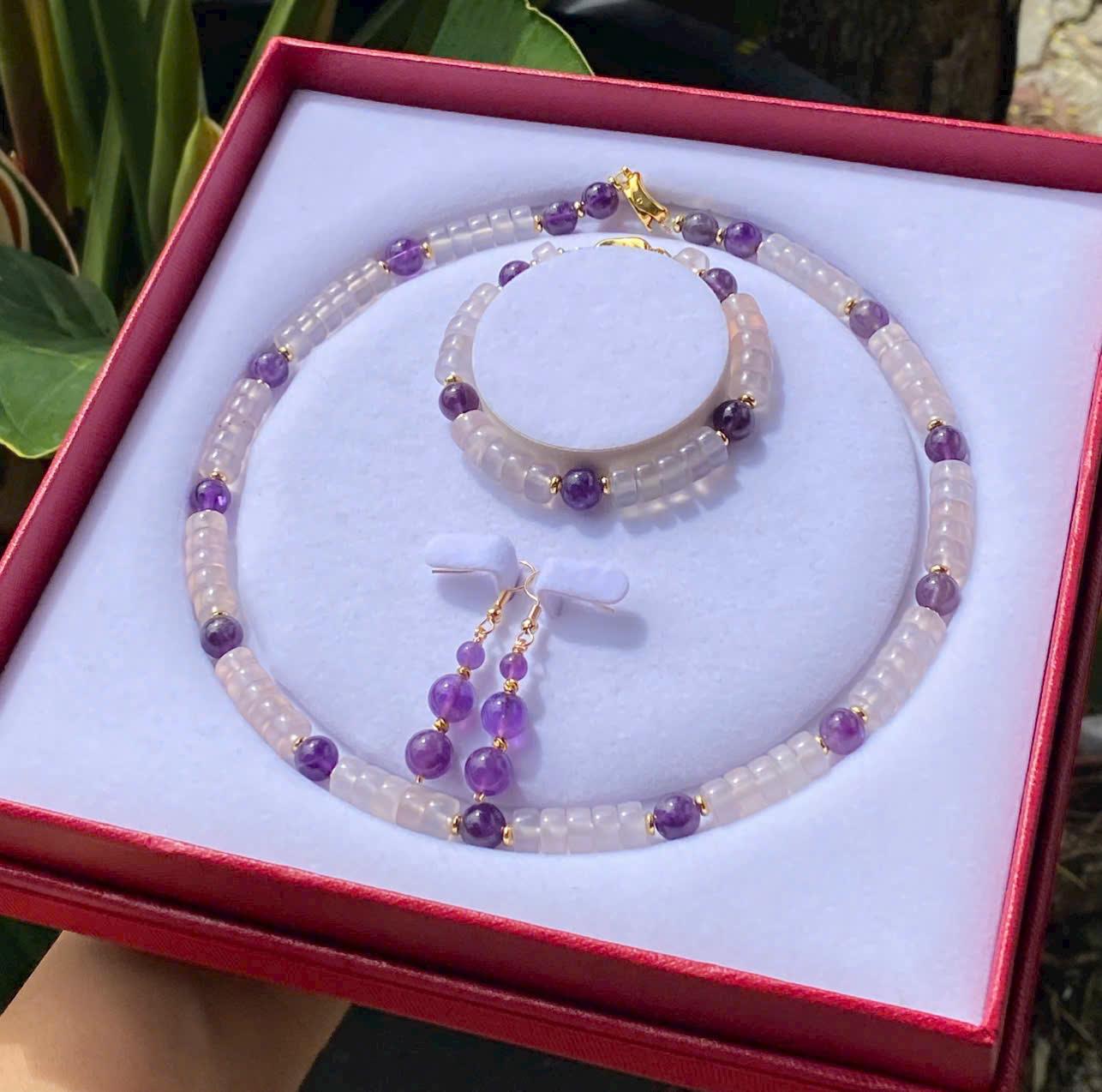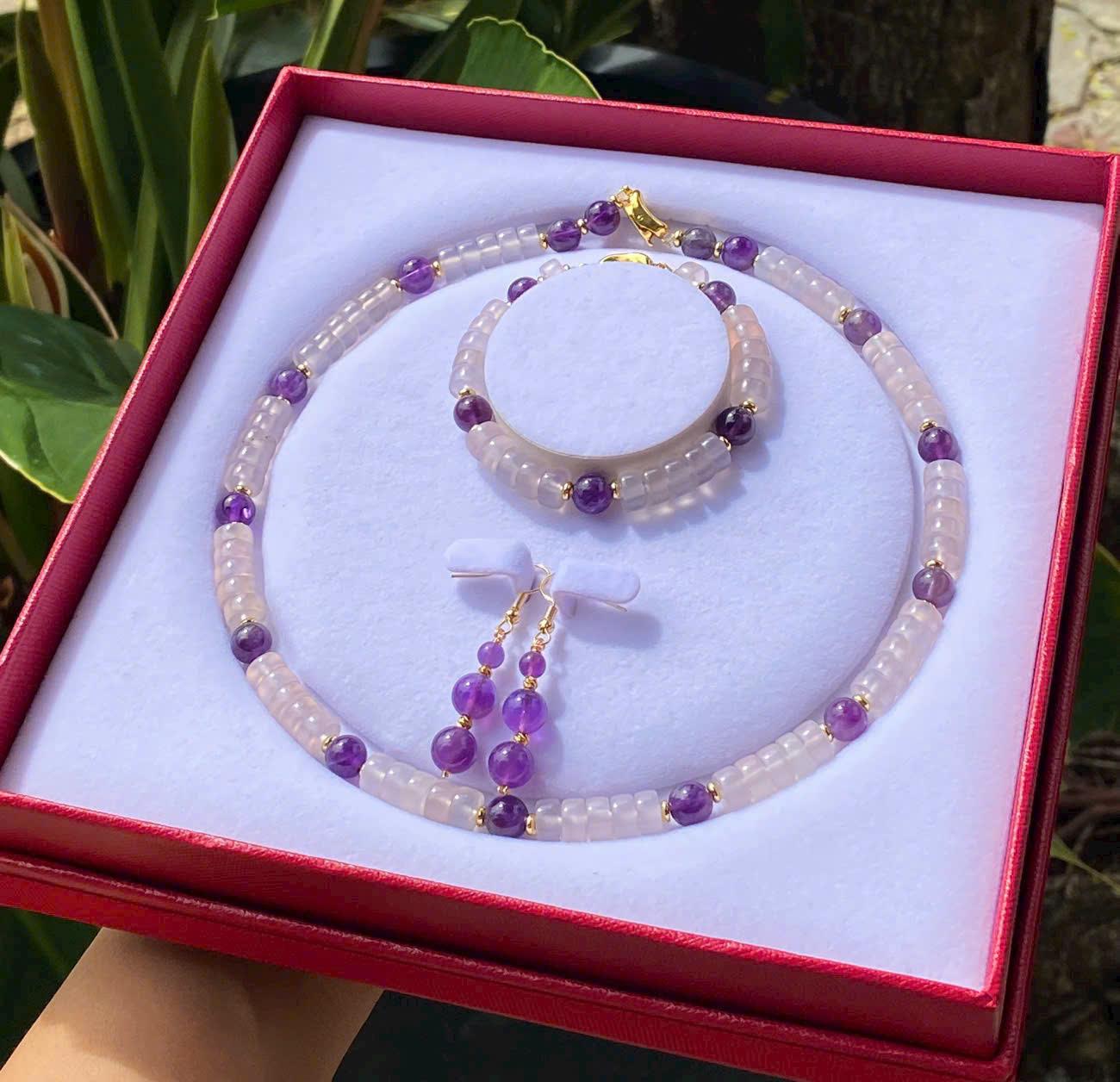 Giới thiệu Set trang sức Chalcedony tím mix Thạch Anh Tím