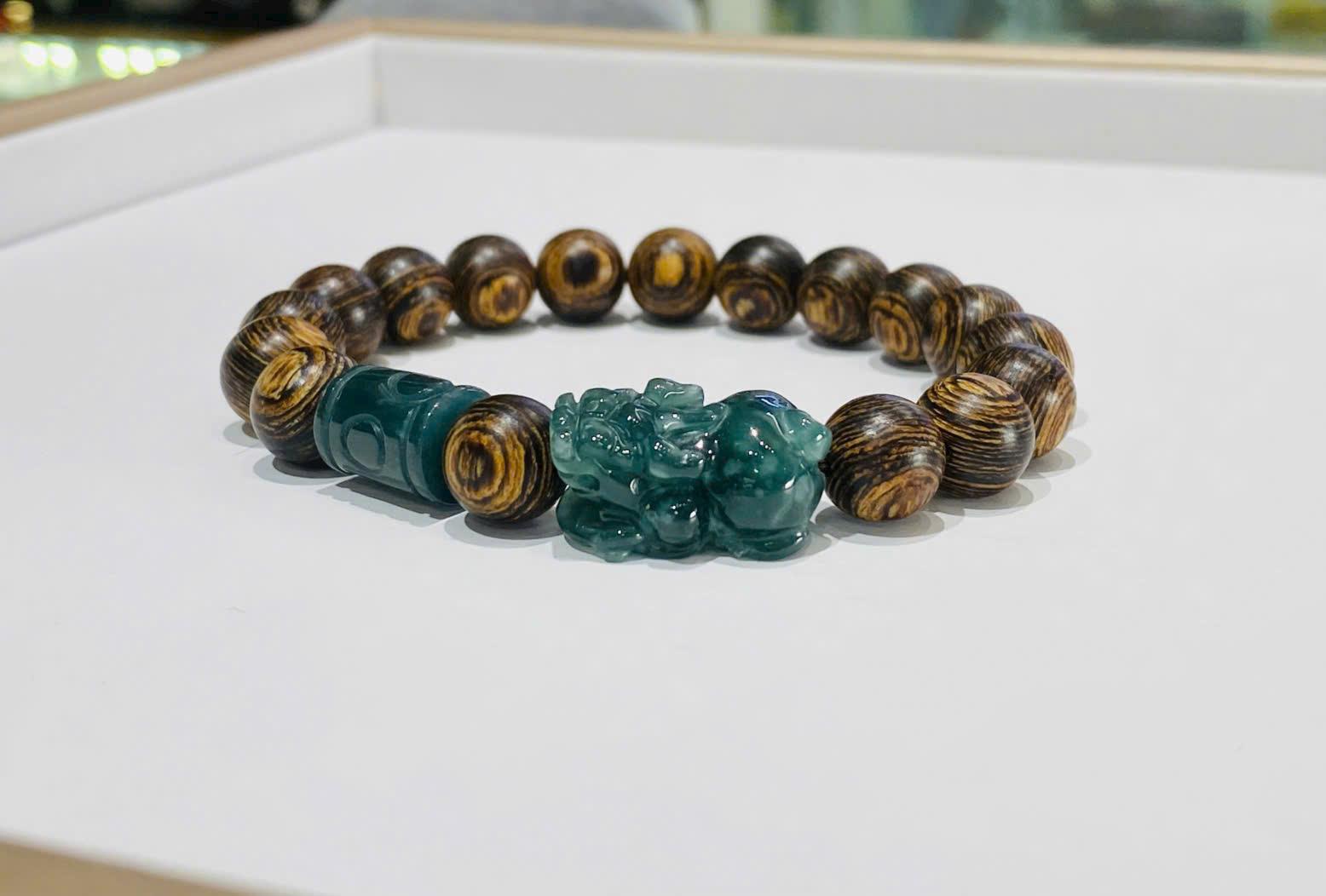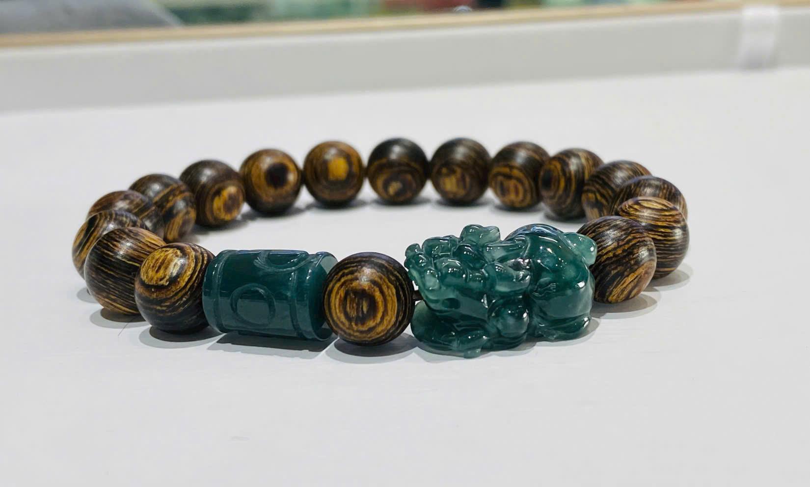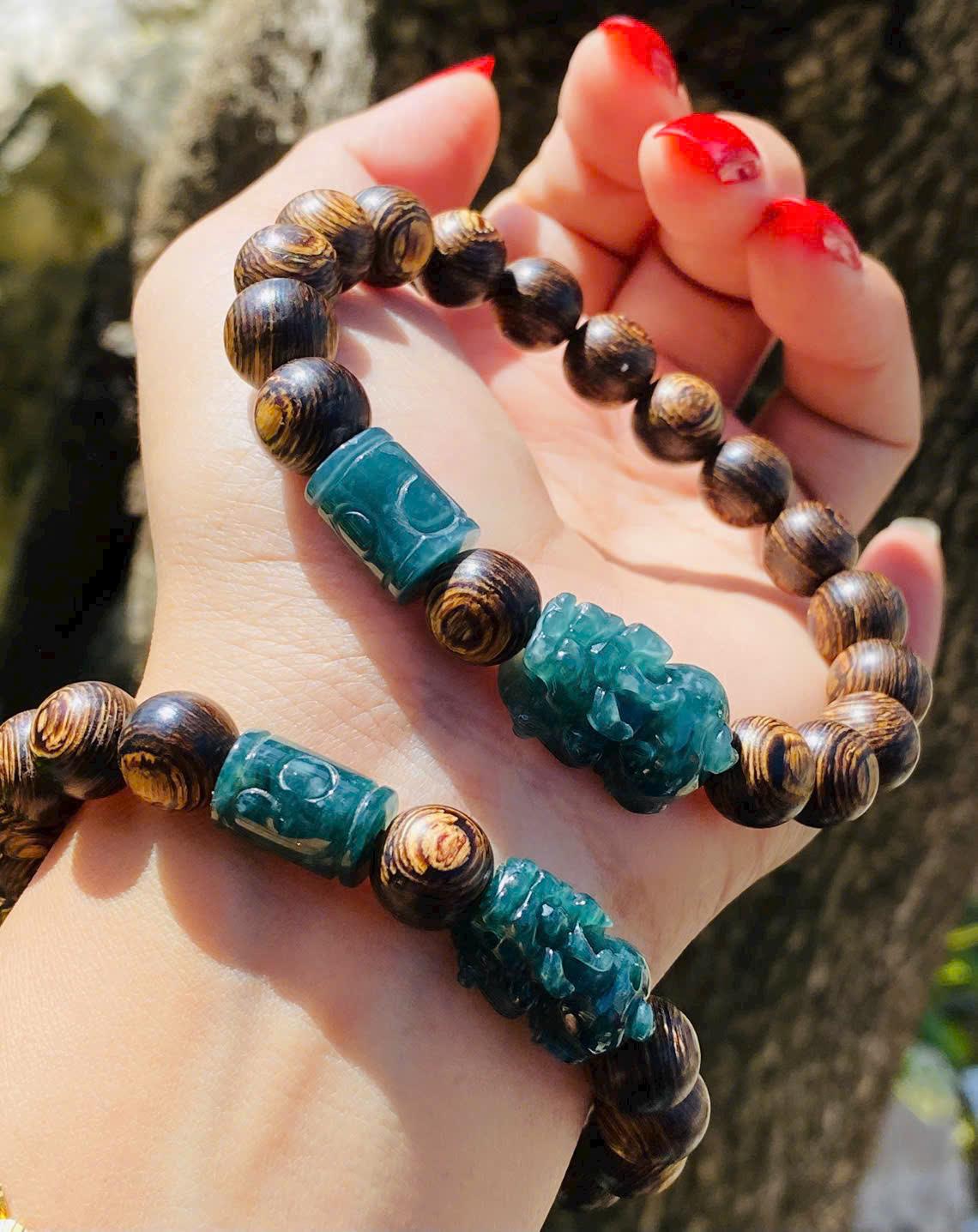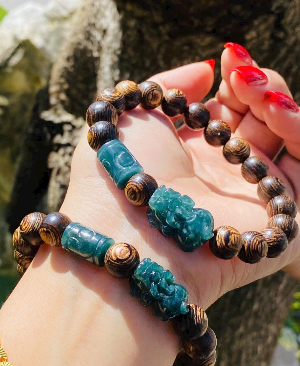 Trầm sánh chìm 10li mix charm lam ngọc B1380A1 – khí chất trầm ổn, điểm nhấn phong thủy đắt giá