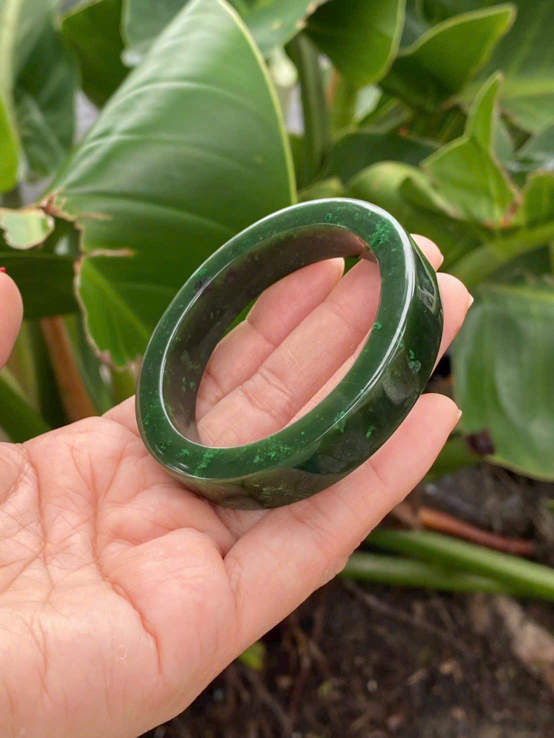 Chất liệu ngọc bích Canada vốn nổi tiếng nhờ độ dai, độ bền cao và khả năng giữ màu theo thời gian. Khi được chế tác thành dáng bản vuông, chiếc vòng không chỉ phô bày được chất liệu nguyên khối mà còn tạo cảm giác sắc sảo, mạnh mẽ, toát lên thần thái sang trọng cho người đeo. Đây là dòng sản phẩm hiếm bởi để chế tác được bản vuông đều, đẹp, không rạn nứt đòi hỏi phải chọn lựa phôi đá chất lượng cao, có độ mịn tốt và màu sắc đồng đều.