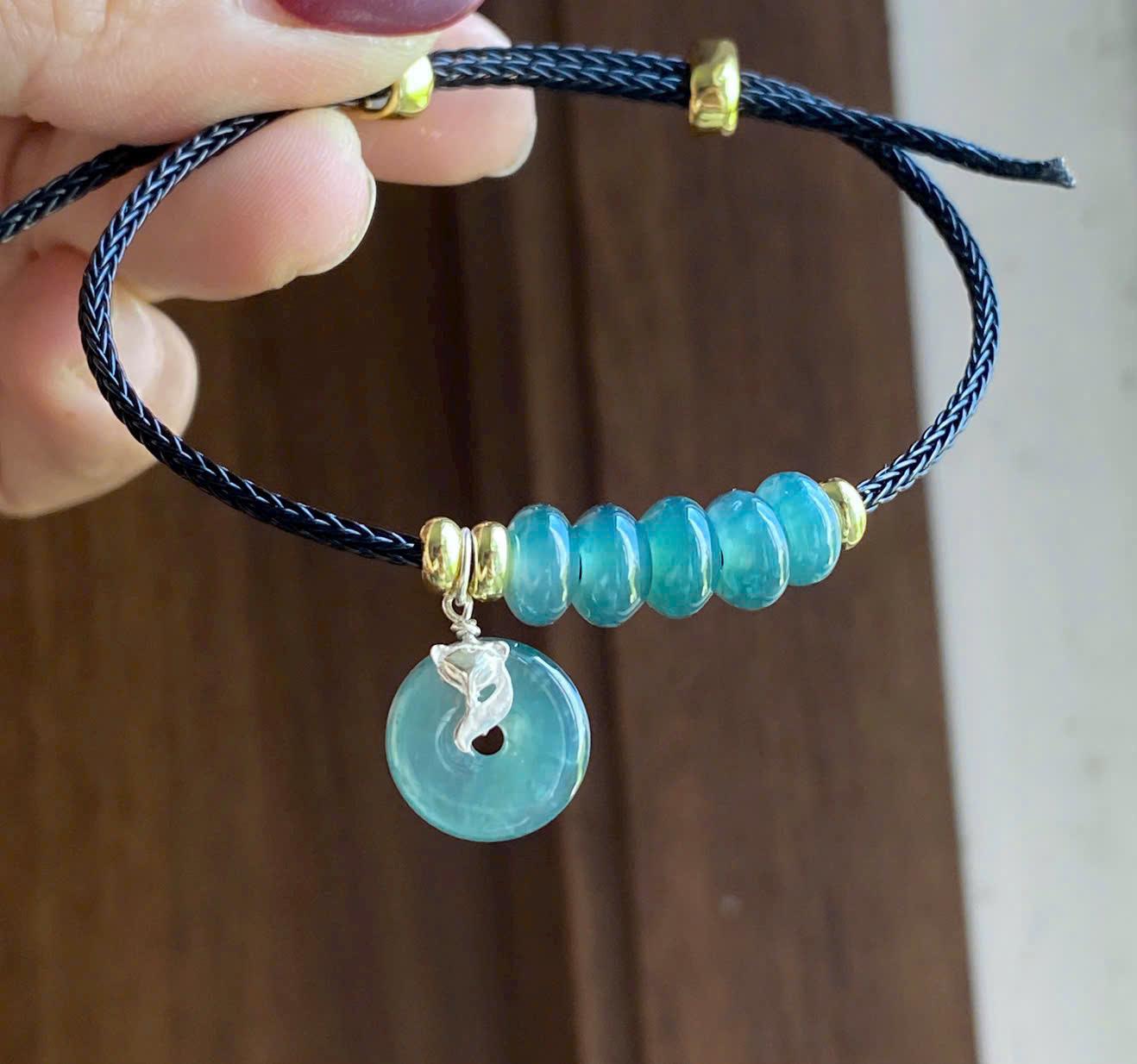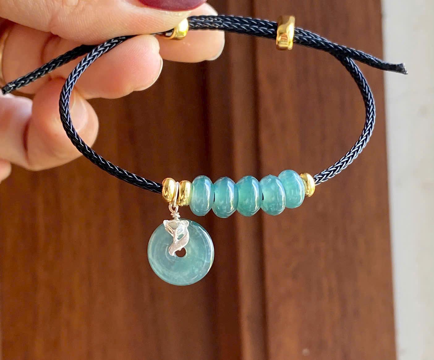 Vòng cáo cao băng chất trong là món trang sức mang vẻ đẹp tinh tế, nhẹ nhàng nhưng không kém phần nổi bật. Thiết kế kết hợp giữa charm hồ ly, đồng xu ngọc và chuỗi hạt xanh tạo nên tổng thể hài hòa, vừa hiện đại vừa mang nét phong thủy đặc trưng.