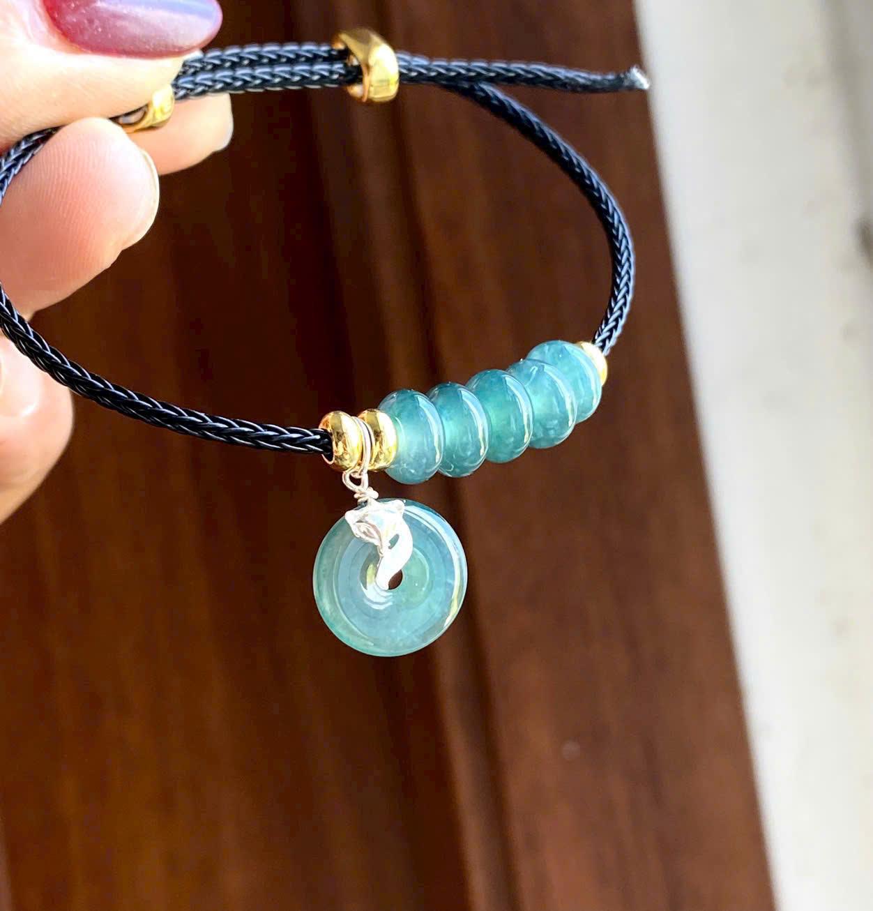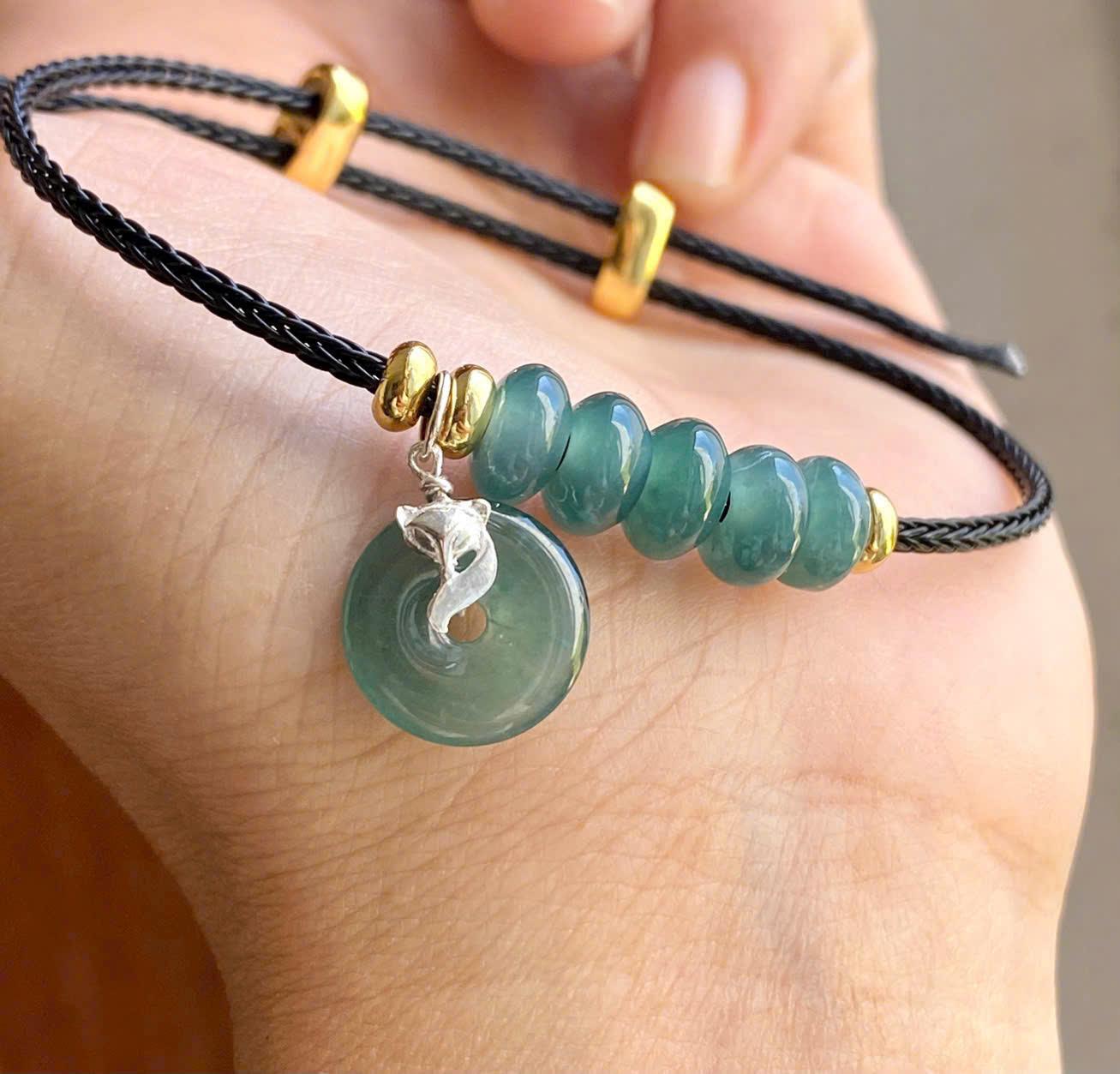 Màu đen của dây giúp làm nổi bật sắc xanh của ngọc, đồng thời tăng thêm vẻ cá tính và hiện đại cho sản phẩm. Đây là sự kết hợp rất phù hợp với những ai thích phong cách trẻ trung nhưng vẫn giữ được nét tinh tế.