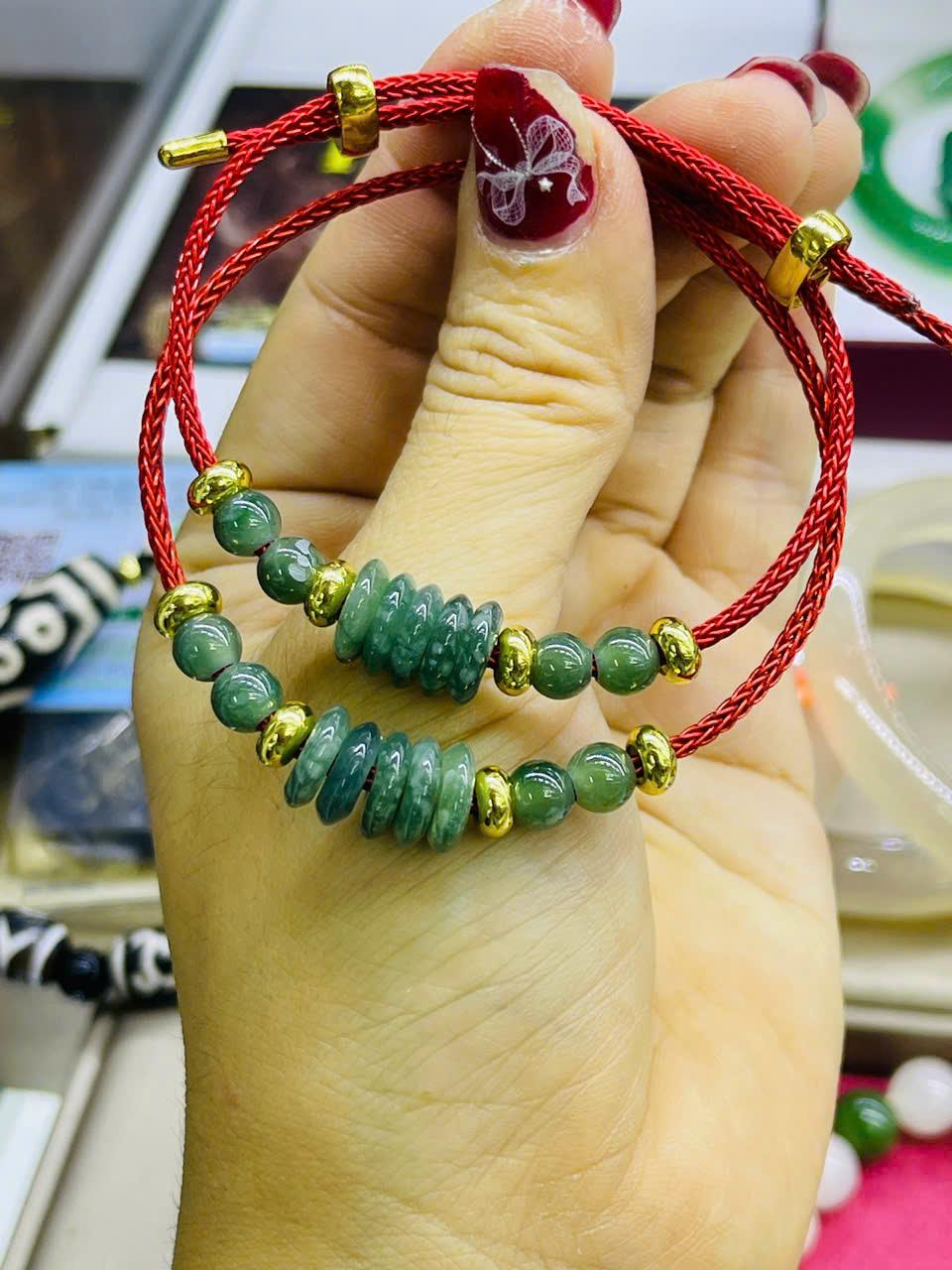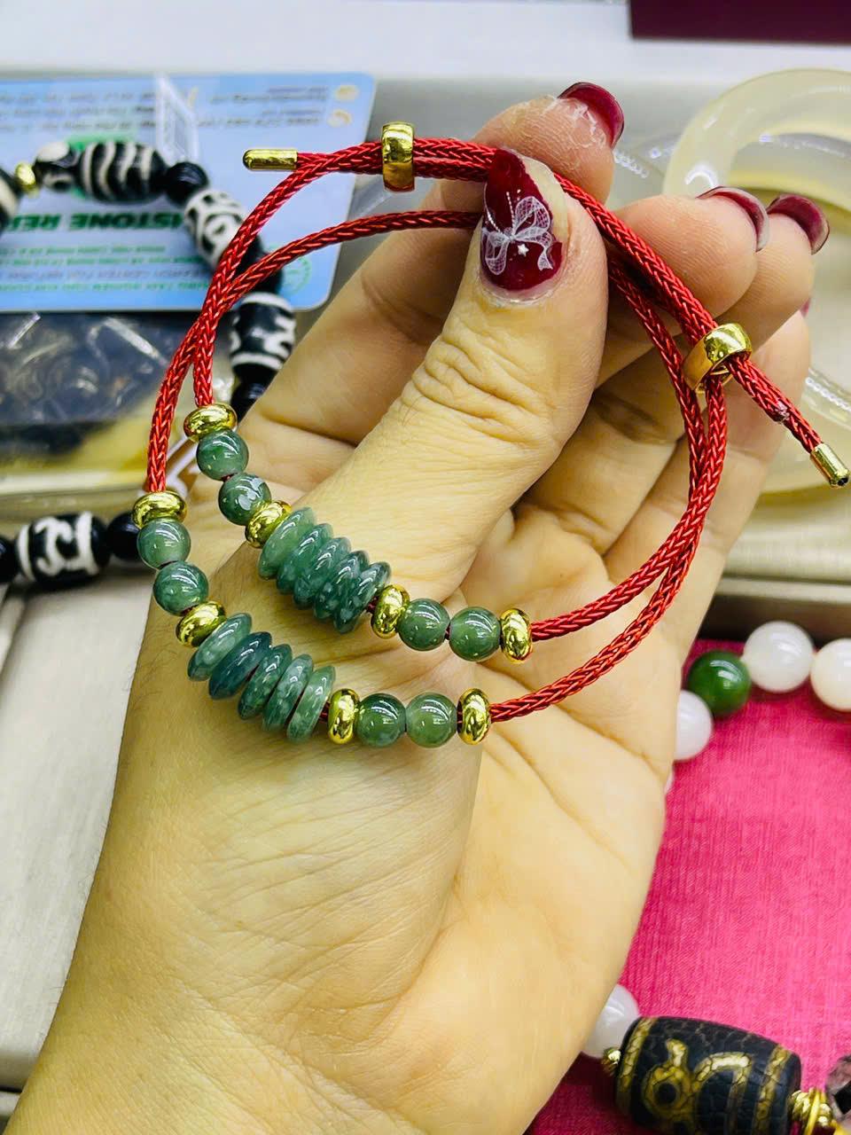Từ lâu, dây đỏ đã được xem là biểu tượng của bình an, giúp hóa giải điều xấu, thu hút tài lộc và mang lại tình duyên tốt đẹp. Kết hợp giữa dây đỏ và ngọc lam xanh lá, chiếc vòng tạo nên sự cân bằng hoàn hảo giữa năng lượng mạnh mẽ và sự tĩnh tại nội tâm.