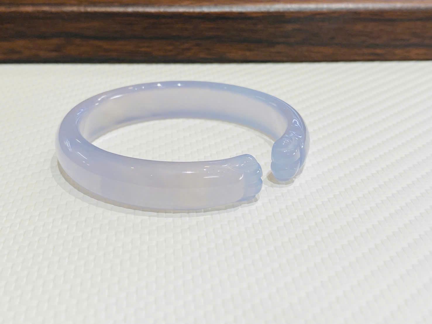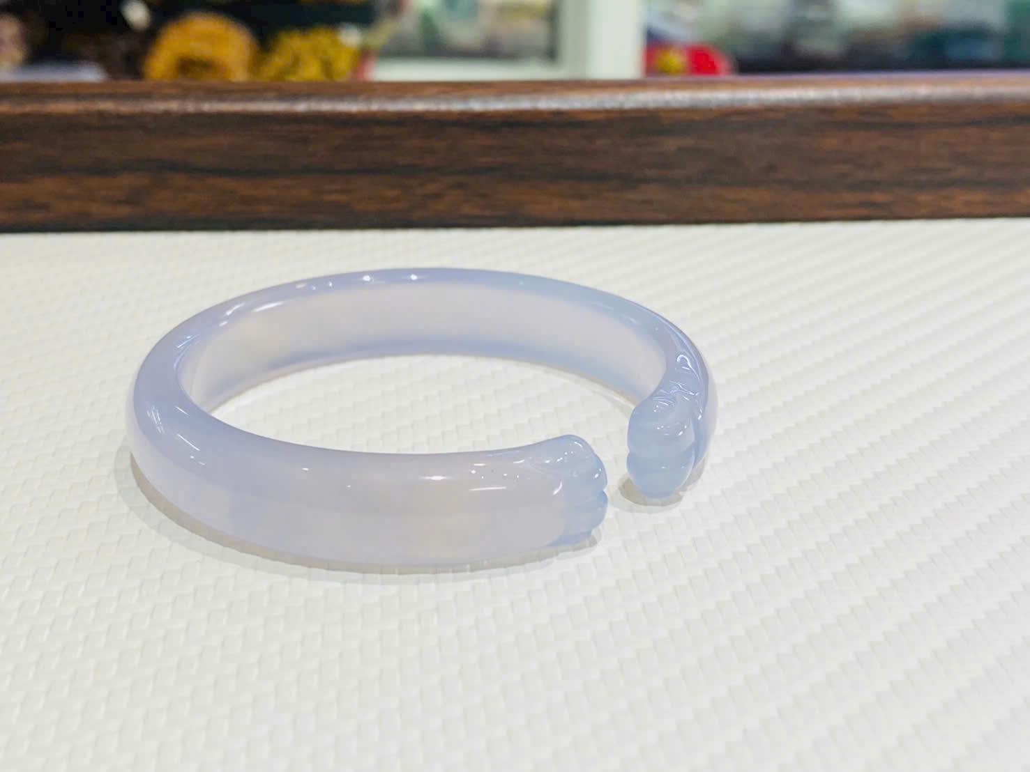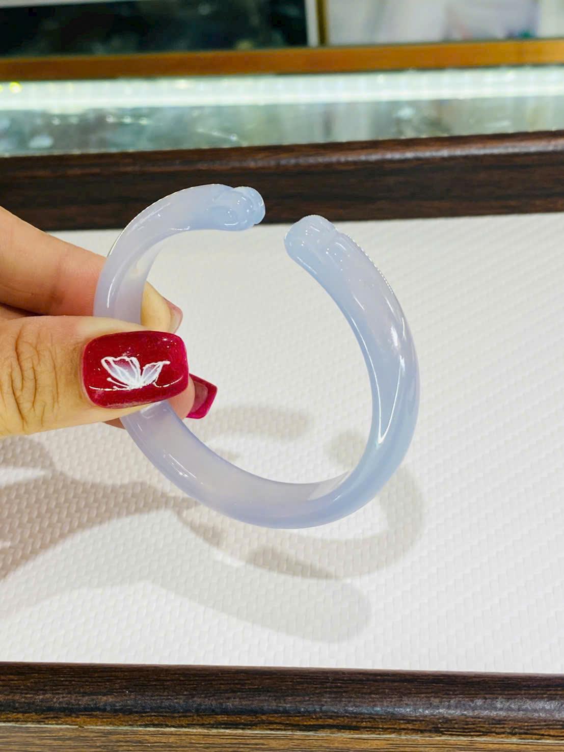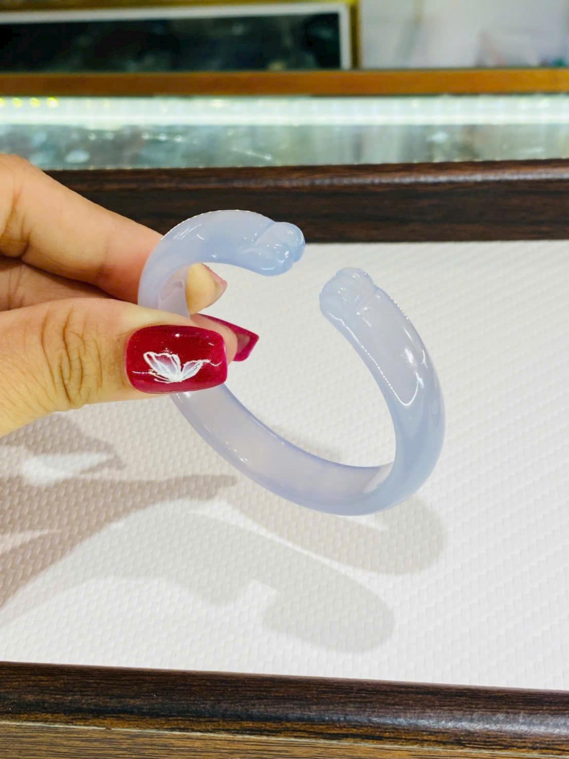 Ánh tím tử lan trên nền đá tự nhiên tạo nên hiệu ứng trong veo, mờ sương đầy cuốn hút. Dưới ánh sáng, chiếc vòng hiện lên những dải màu tím nhạt loang nhẹ, chuyển sắc tinh tế, mang lại cảm giác dịu mắt, thư thái và dễ chịu.