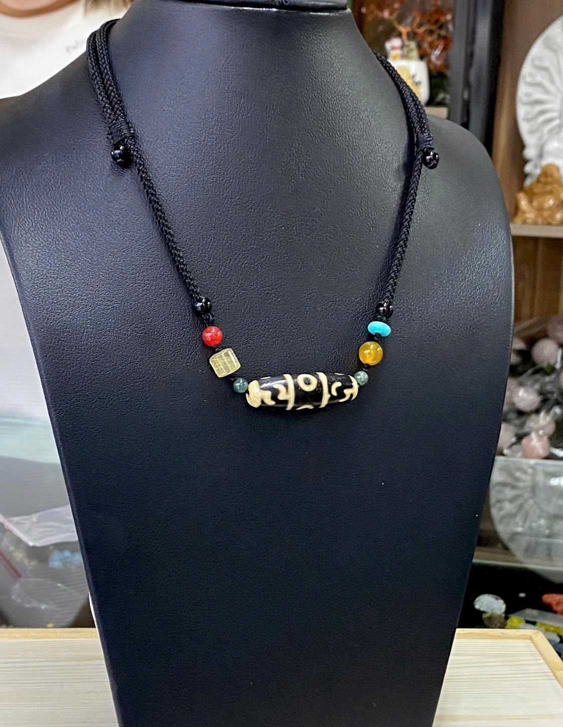 Khi kết hợp với viên Dzi 3 mắt thân nâu, vòng cổ trở thành tấm bùa hộ mệnh mạnh mẽ, giúp chủ nhân luôn vững vàng trong mọi tình huống và giữ vững tinh thần sáng suốt.