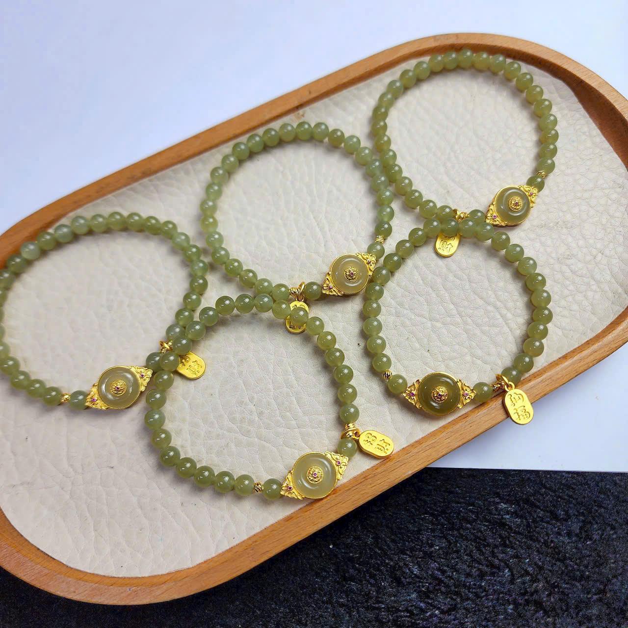 Ngọc Hòa Điền được xem là biểu tượng của sự thanh khiết, thu hút năng lượng tích cực và xua đuổi điều xấu. Đeo vòng tay ngọc Hòa Điền mix charm điếu giúp chủ nhân giữ được tinh thần an nhiên, đồng thời chiêu tài lộc và may mắn. Với kích thước 6mm nhỏ gọn, sản phẩm thích hợp đeo hàng ngày, vừa là trang sức vừa là vật phẩm phong thủy.