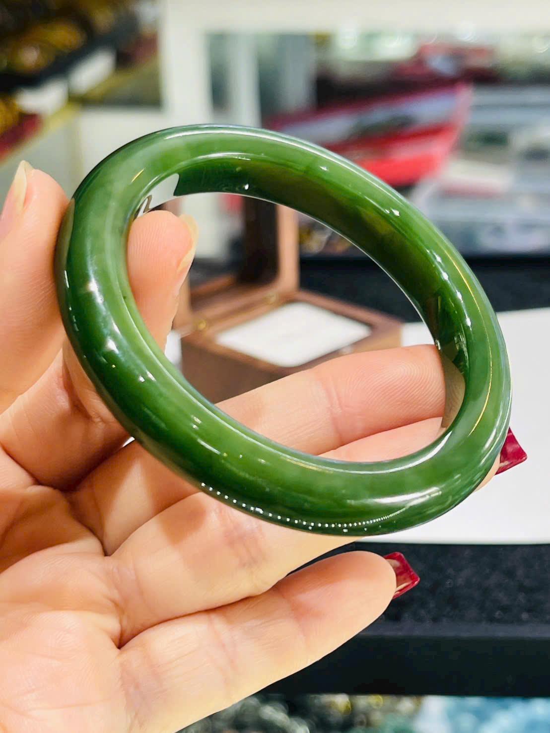 Vòng được chế tác từ ngọc Bích tự nhiên, có kết cấu chắc, độ cứng cao và khả năng giữ độ bóng rất tốt. Bề mặt ngọc mịn, khi chạm vào mang lại cảm giác mát tay dễ chịu, đúng đặc trưng của ngọc tự nhiên chất lượng cao.
