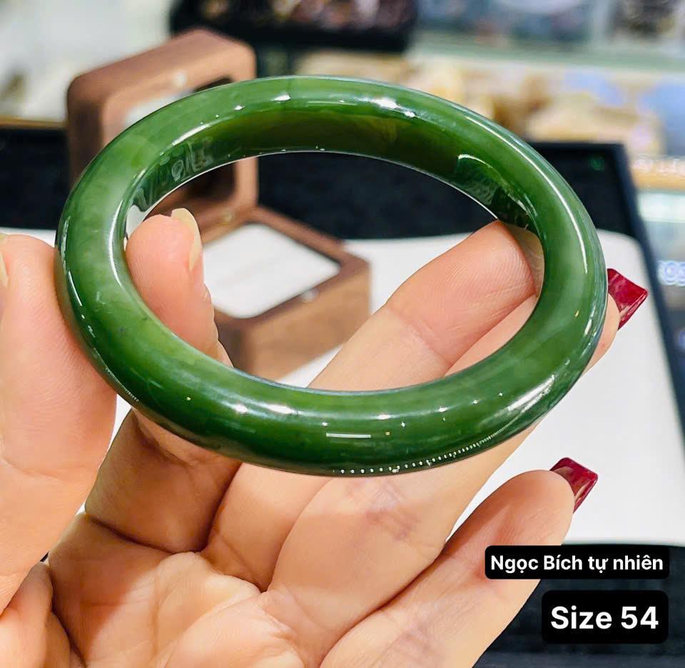 Vòng tay ngọc Bích size 54 là size khá phổ biến, đặc biệt phù hợp với cổ tay nhỏ đến trung bình, nhất là nữ giới hoặc những ai yêu thích vòng đeo ôm tay, gọn gàng và thanh thoát. Khi đeo, vòng ôm trọn cổ tay, tạo cảm giác nhẹ nhàng nhưng vẫn chắc chắn, không bị lỏng lẻo hay cấn tay.