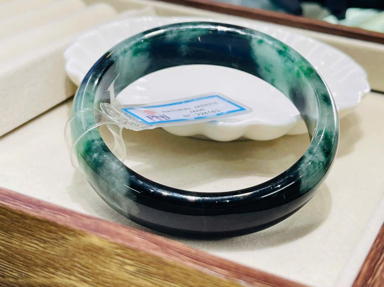 Vòng ngọc cẩm thạch sơn thủy size 59.1 là một tuyệt phẩm dành cho những ai yêu vẻ đẹp trầm lắng, sâu sắc và đầy tính nghệ thuật của đá tự nhiên. Ngay từ ánh nhìn đầu tiên, chiếc vòng gây ấn tượng bởi sự chuyển sắc độc đáo giữa xanh đậm, xanh rêu và những mảng trắng trong như làn sương mờ. Tổng thể tạo nên một bức tranh “sơn thủy” thu nhỏ – nơi núi non, mây trời và dòng nước như hòa quyện trong từng thớ đá.