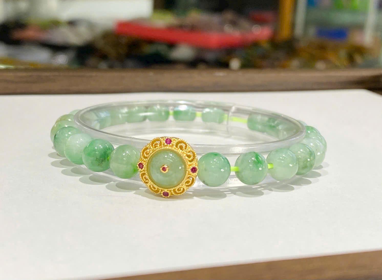Không chỉ đóng vai trò làm đẹp, charm còn mang ý nghĩa phong thủy về sự tròn đầy, viên mãn và thu hút tài lộc. Sự kết hợp giữa ngọc xanh táo và charm giúp tổng thể vòng vừa mềm mại, vừa có điểm nhấn cao cấp, phù hợp cả khi đeo đơn lẻ hoặc kết hợp cùng các loại vòng khác.