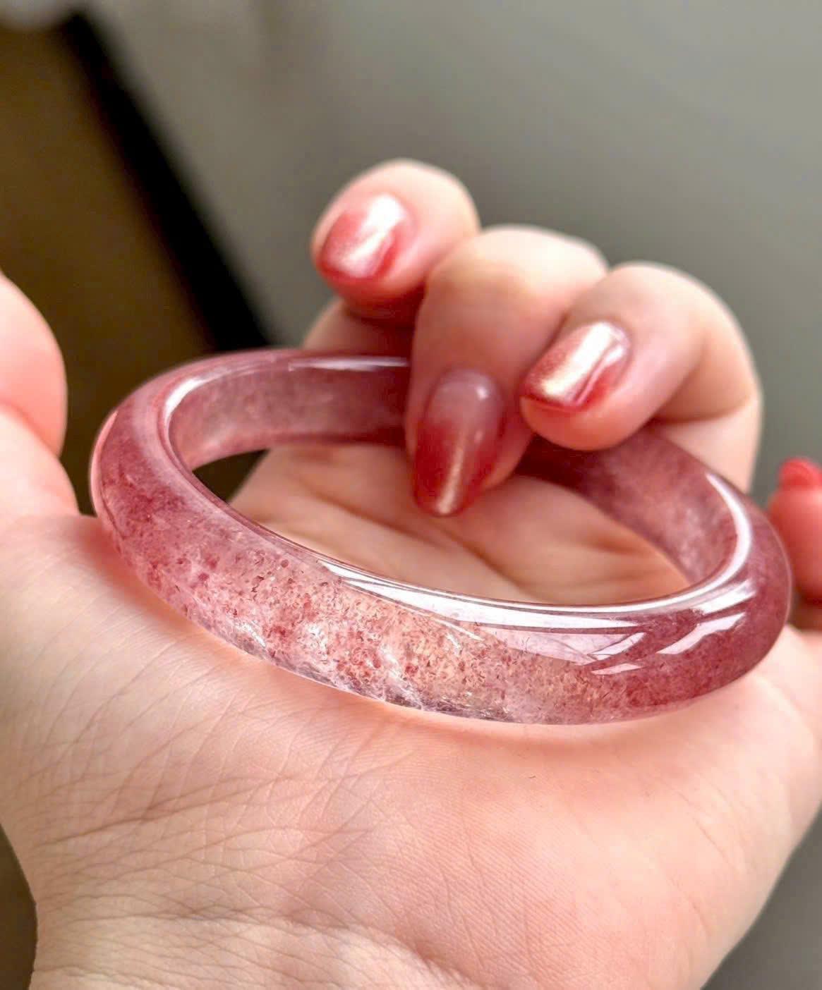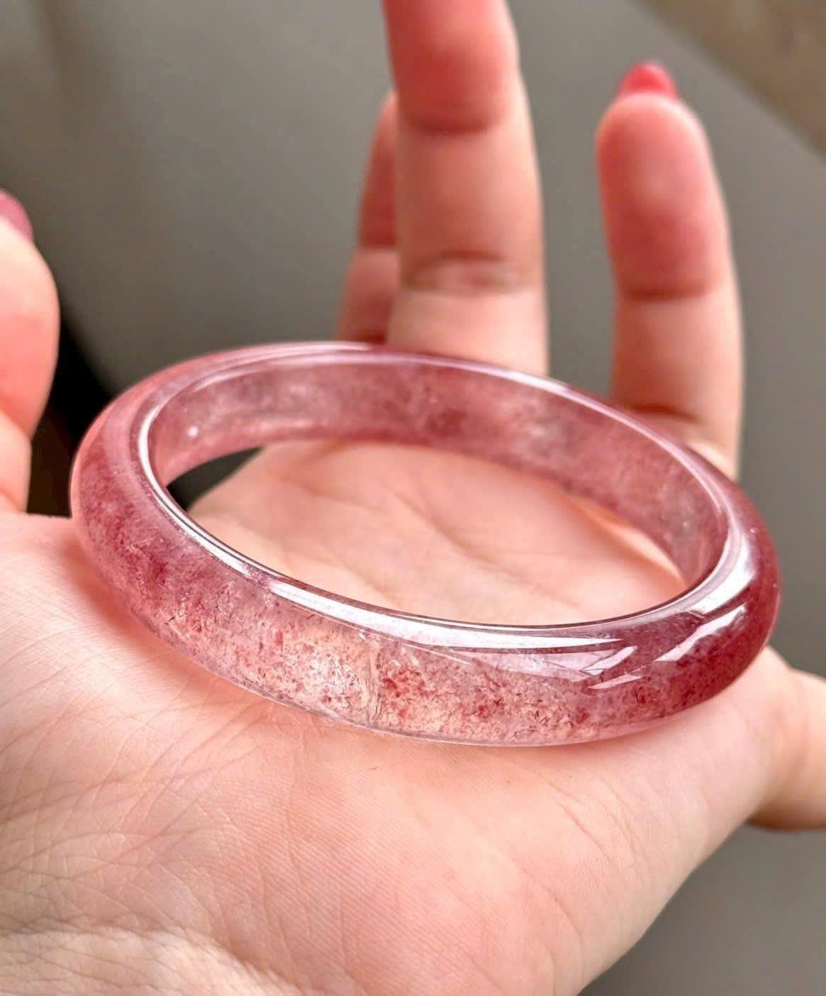 Mỗi chiếc vòng đều mang vẻ đẹp riêng bởi các tinh thể khoáng bên trong phân bố tự nhiên, không chiếc nào giống chiếc nào. Sự hòa quyện giữa sắc hồng dịu dàng và độ trong của thạch anh mang lại cảm giác thanh thoát, nữ tính nhưng vẫn rất sang trọng.