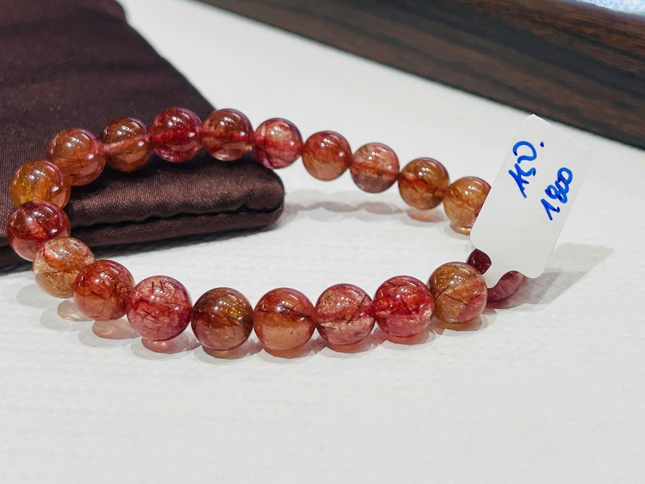 Ở chiếc vòng này, các hạt có độ trong khá tốt, giúp phần “tóc” bên trong hiện lên rõ nét, sắc sảo. Sự pha trộn giữa đỏ, cam và ánh nâu tạo nên một bảng màu ấm, rất dễ gây thiện cảm và thu hút ánh nhìn.