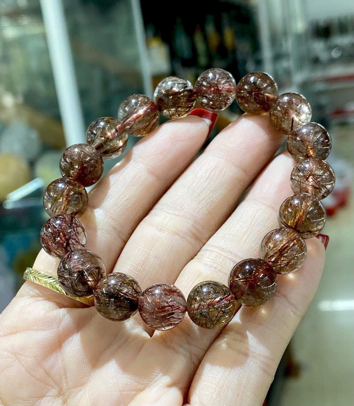 Vòng Tay Thạch Anh Tóc Nâu Size 10.7li Năng Lượng Ổn Định Và Vẻ Đẹp Trầm Ấm Sang Trọng