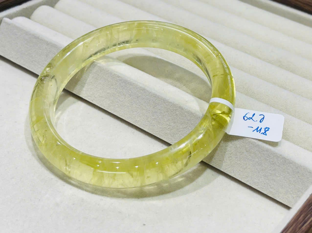 Đây là dòng thạch anh vàng tự nhiên, giữ nguyên cấu trúc và vân đá bên trong. Bạn có thể thấy những đường vân nhẹ, dạng sợi hoặc mây mờ, phân bố không đồng đều – chính điều này tạo nên nét độc bản cho từng chiếc vòng. Không có hai chiếc nào giống hệt nhau, và đó cũng là giá trị mà người chơi đá tự nhiên luôn trân trọng.