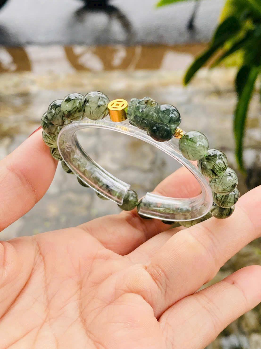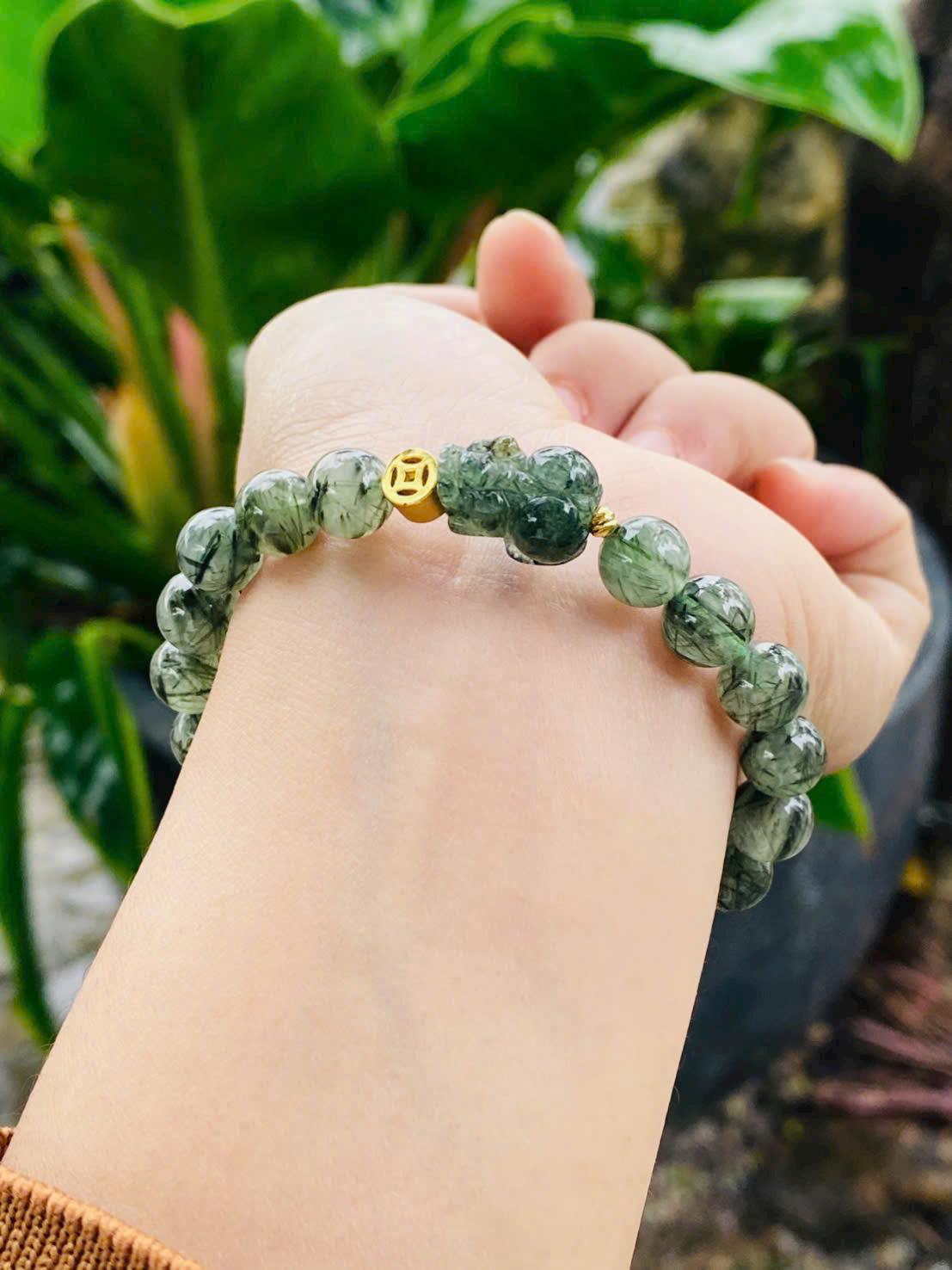 Vòng tay tỳ hưu thạch anh tóc xanh_TA74
