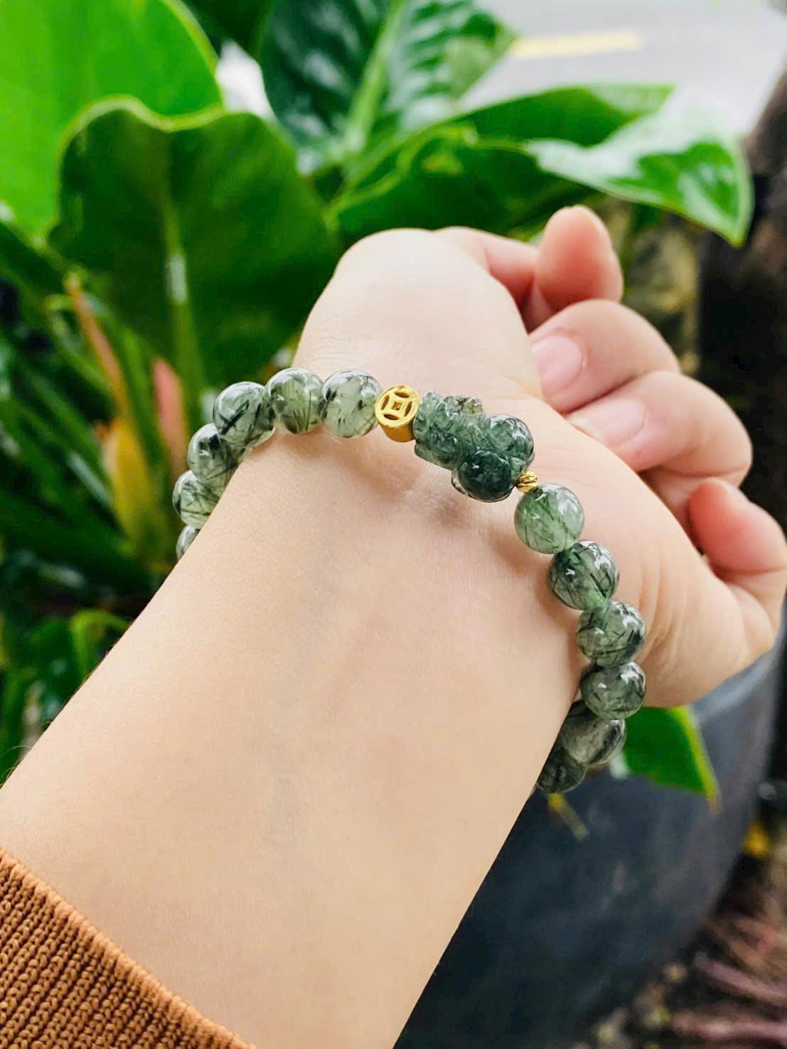 Vòng Tay Hạt Thạch Anh Tóc Xanh Mix Charm Tỳ Hưu – Vẻ Đẹp Mạnh Mẽ, Sang Trọng Và Đầy Ý Nghĩa